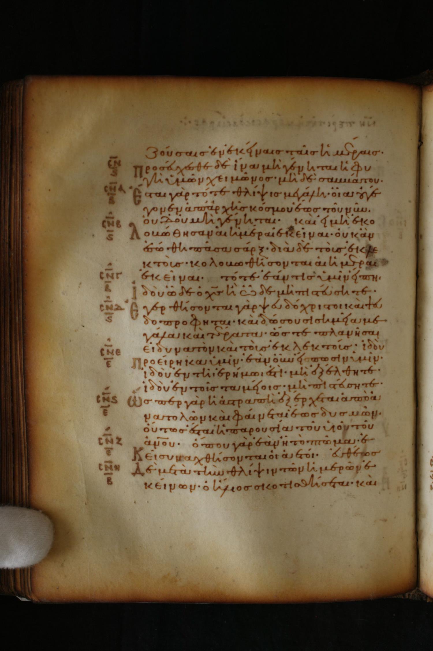 Gospels minuscule manuscript on parchment; 236 leaves, single column, 25 lines per column. By agreement with the Albanian National Archives, only a portion of the manuscript is posted.