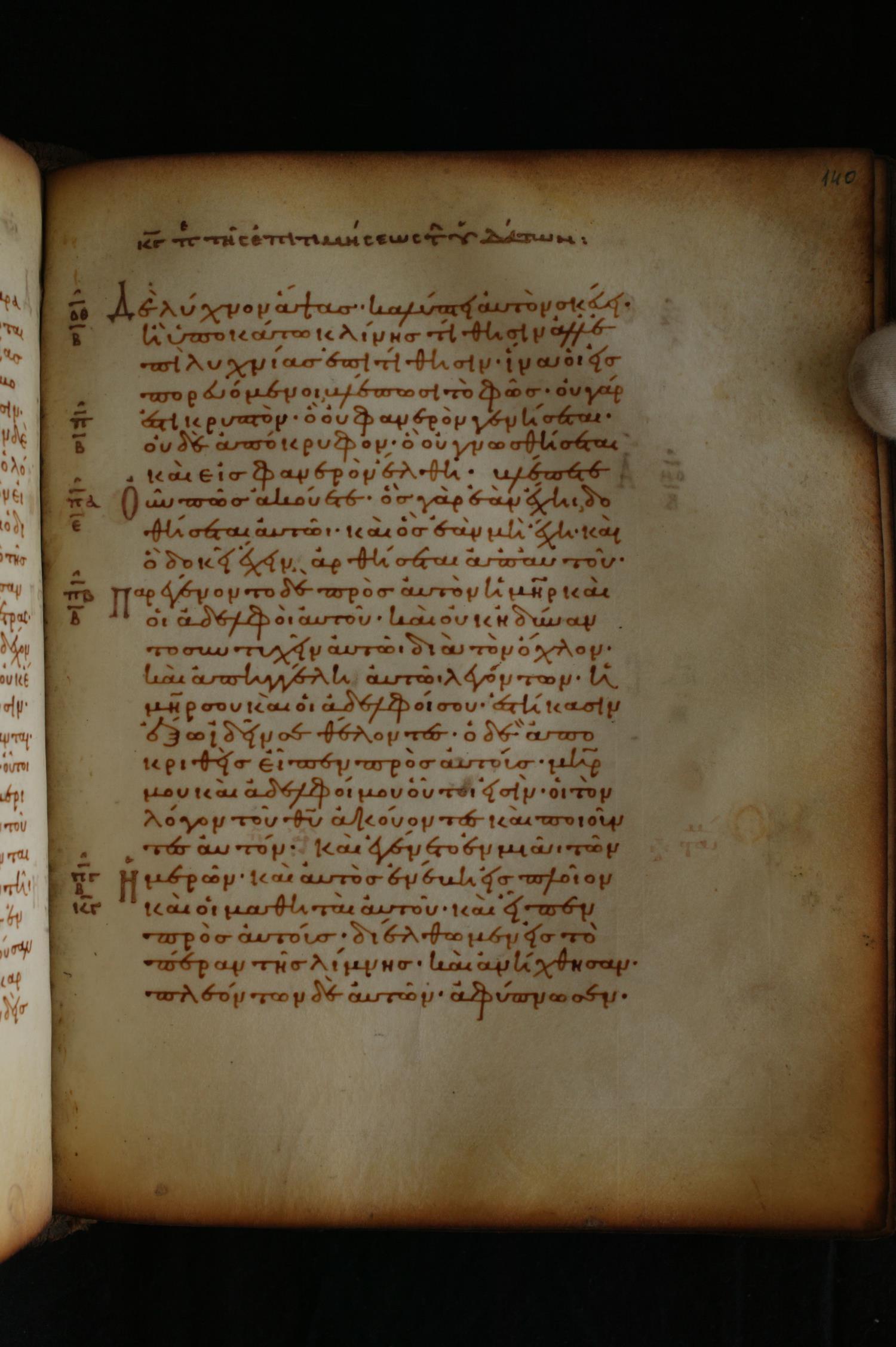 Gospels minuscule manuscript on parchment; 236 leaves, single column, 25 lines per column. By agreement with the Albanian National Archives, only a portion of the manuscript is posted.
