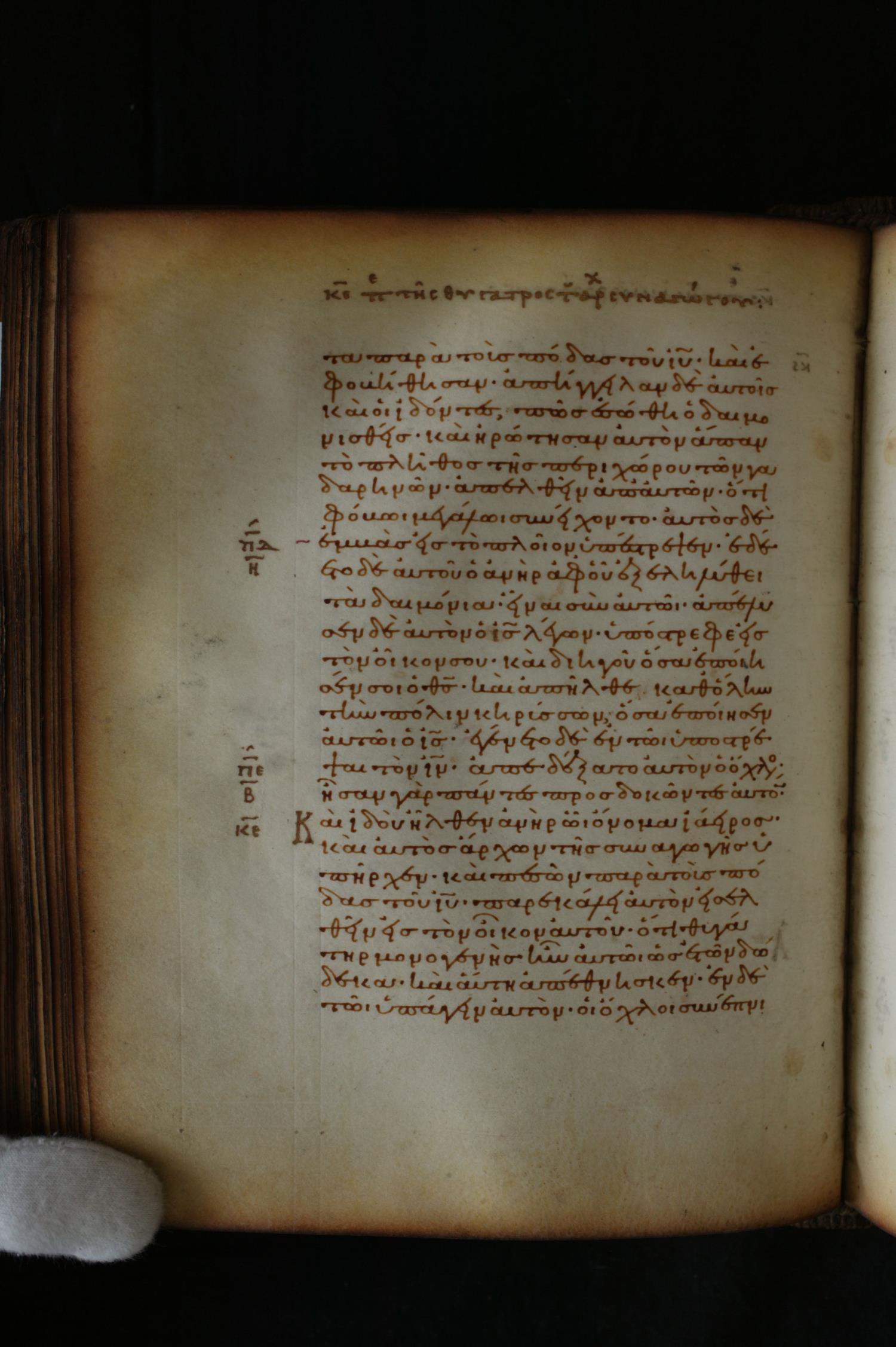 Gospels minuscule manuscript on parchment; 236 leaves, single column, 25 lines per column. By agreement with the Albanian National Archives, only a portion of the manuscript is posted.