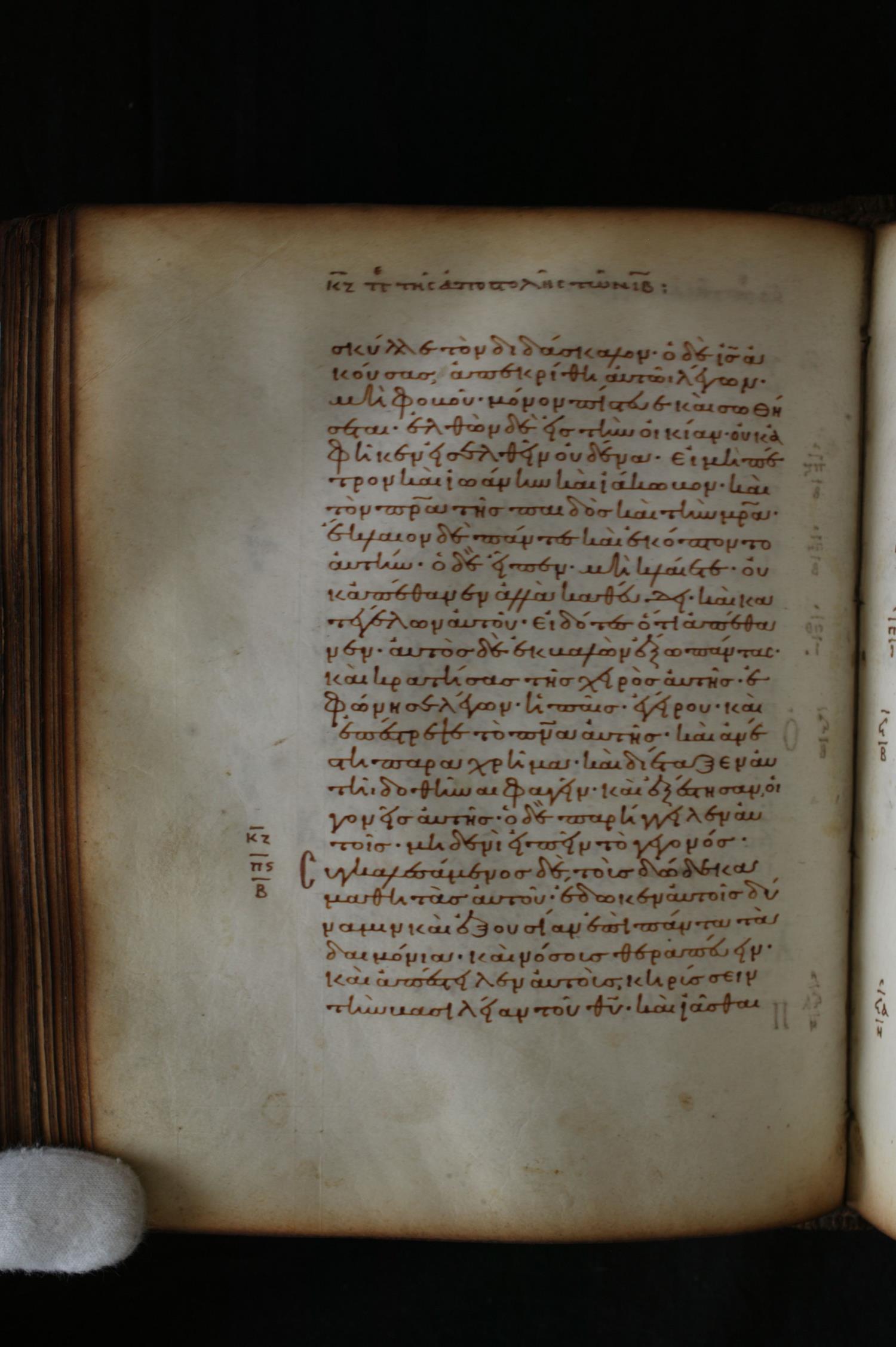 Gospels minuscule manuscript on parchment; 236 leaves, single column, 25 lines per column. By agreement with the Albanian National Archives, only a portion of the manuscript is posted.