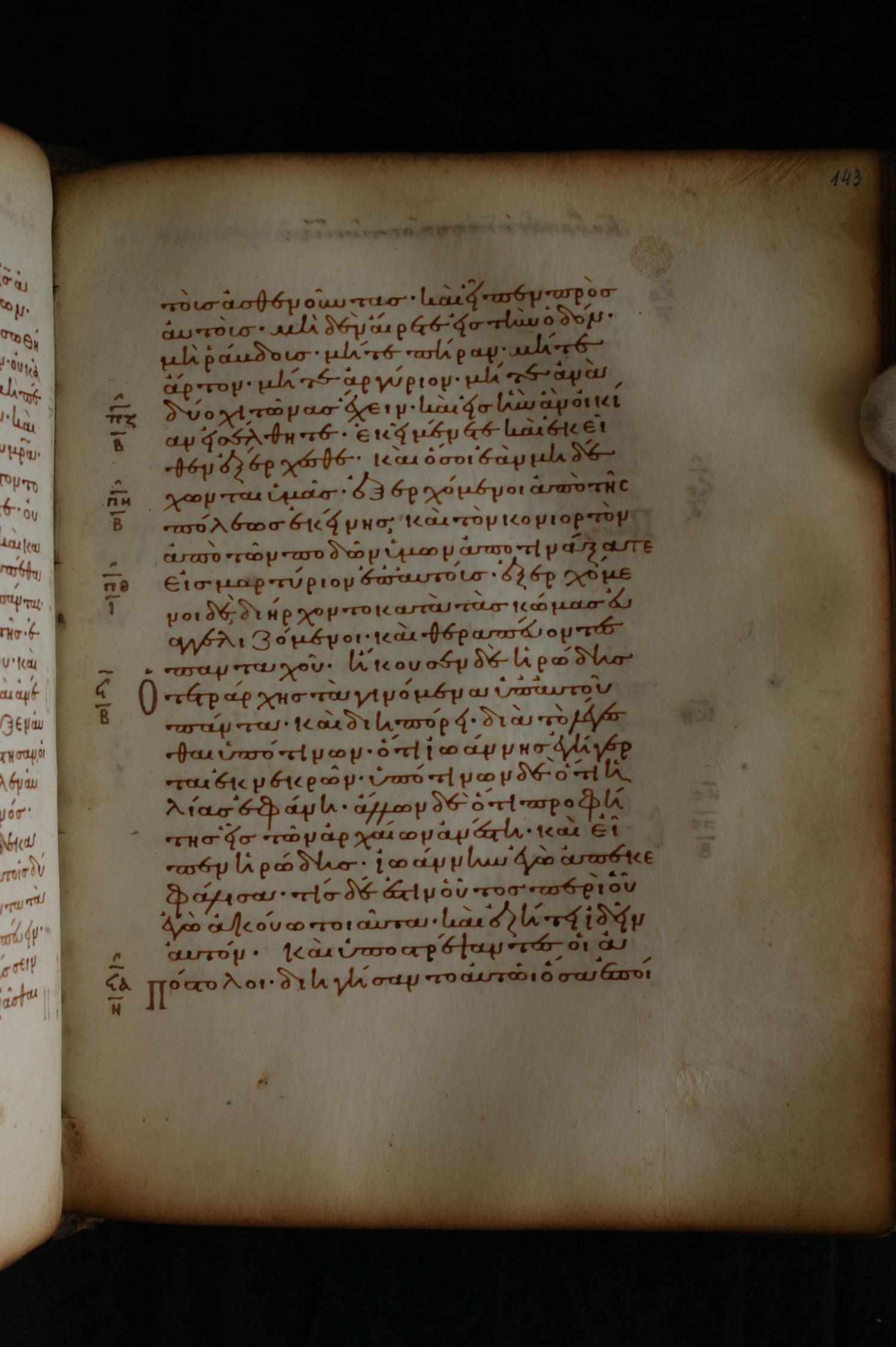 Gospels minuscule manuscript on parchment; 236 leaves, single column, 25 lines per column. By agreement with the Albanian National Archives, only a portion of the manuscript is posted.