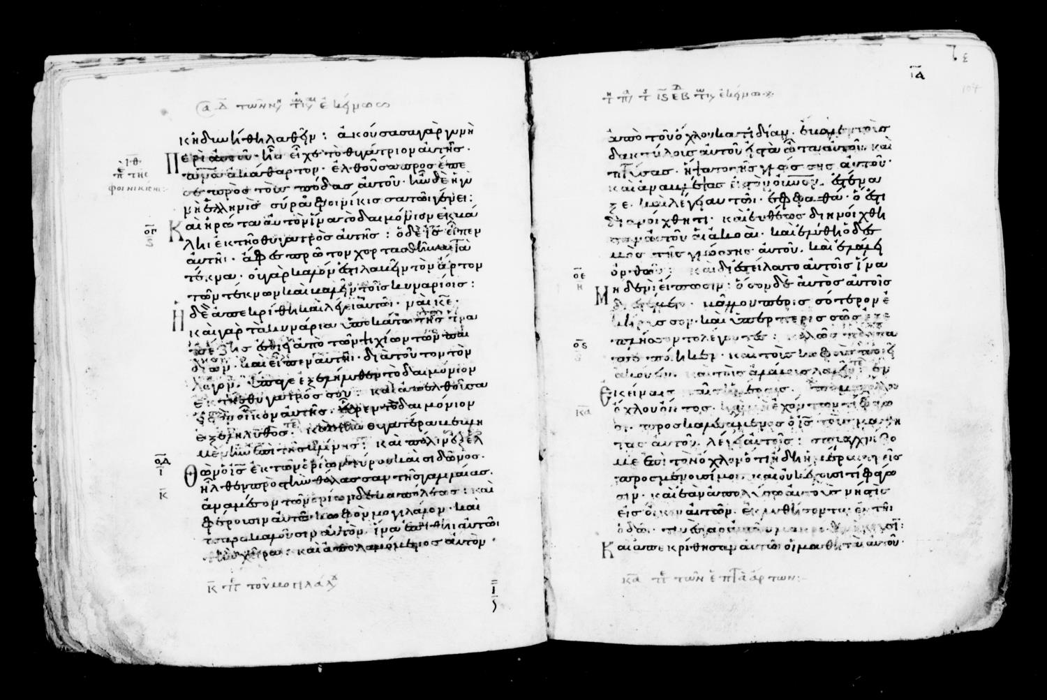 Eleventh century minuscule of the Gospels on parchment; 243 leaves, single column, 25 lines per column. Digital images are from microfilm. These images can be found at the Library of Congress.