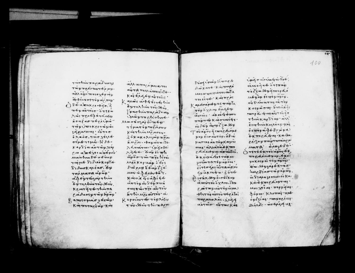 Tenth century minuscule of the Gospels on parchment; 248 leaves, 2 columns, 24 lines per column. Digital images are from microfilm. These images can be found at the Library of Congress.