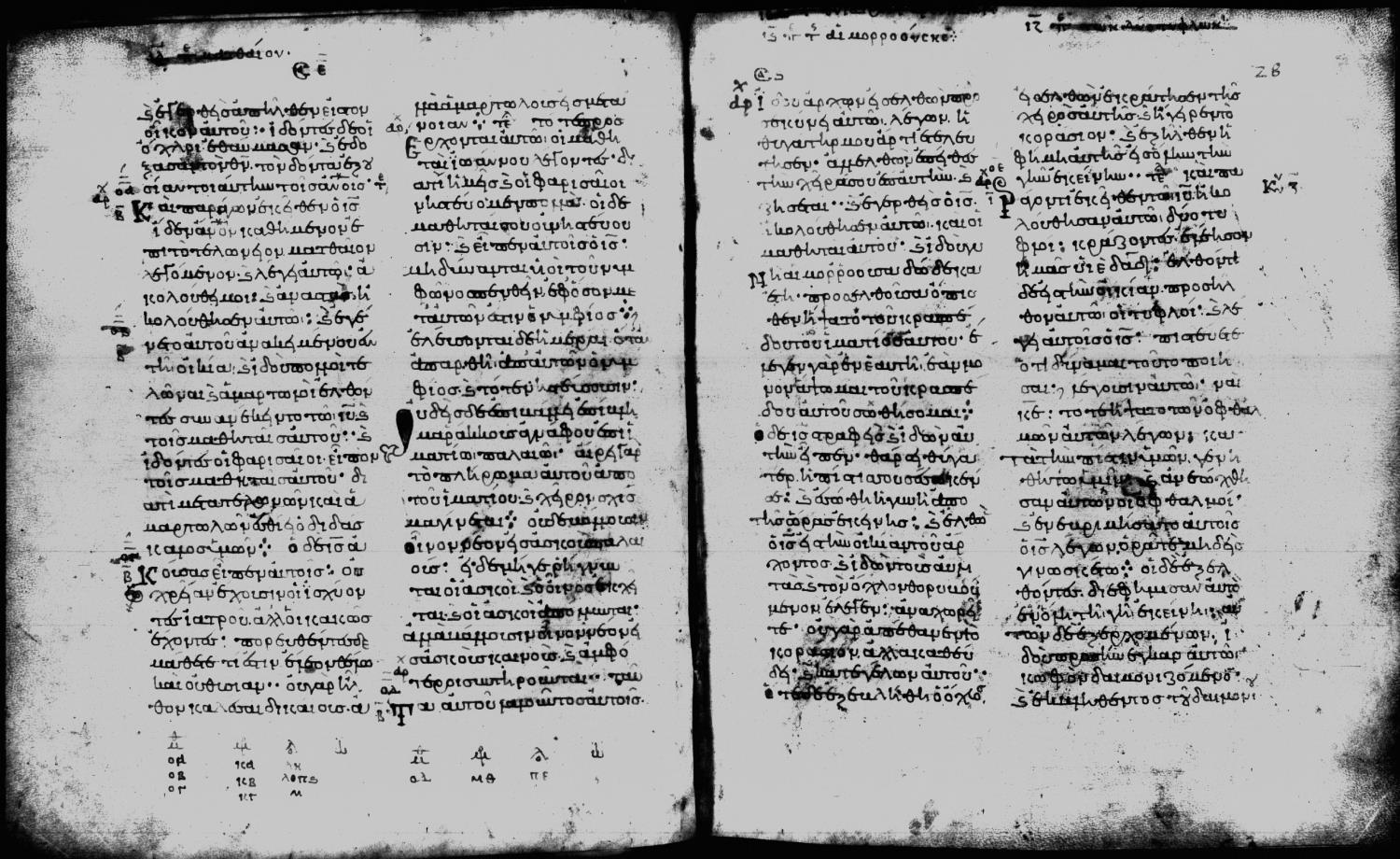 Eleventh century minuscule of the Gospels on parchment; 188 leaves, 2 columns, 25-28 lines per column. Digital images are from microfilm.