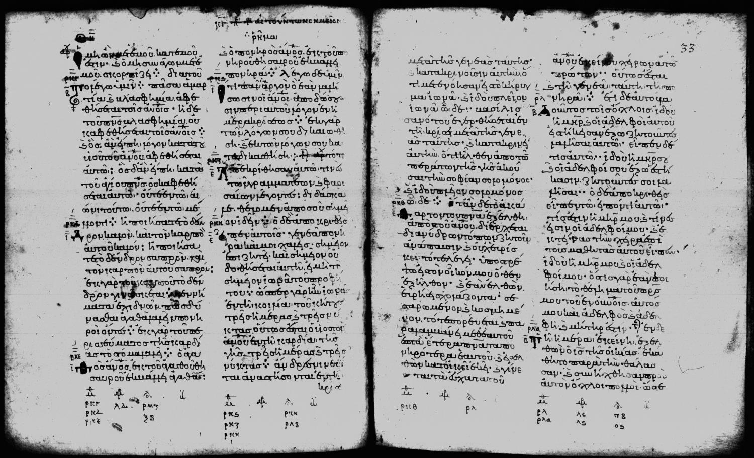 Eleventh century minuscule of the Gospels on parchment; 188 leaves, 2 columns, 25-28 lines per column. Digital images are from microfilm.