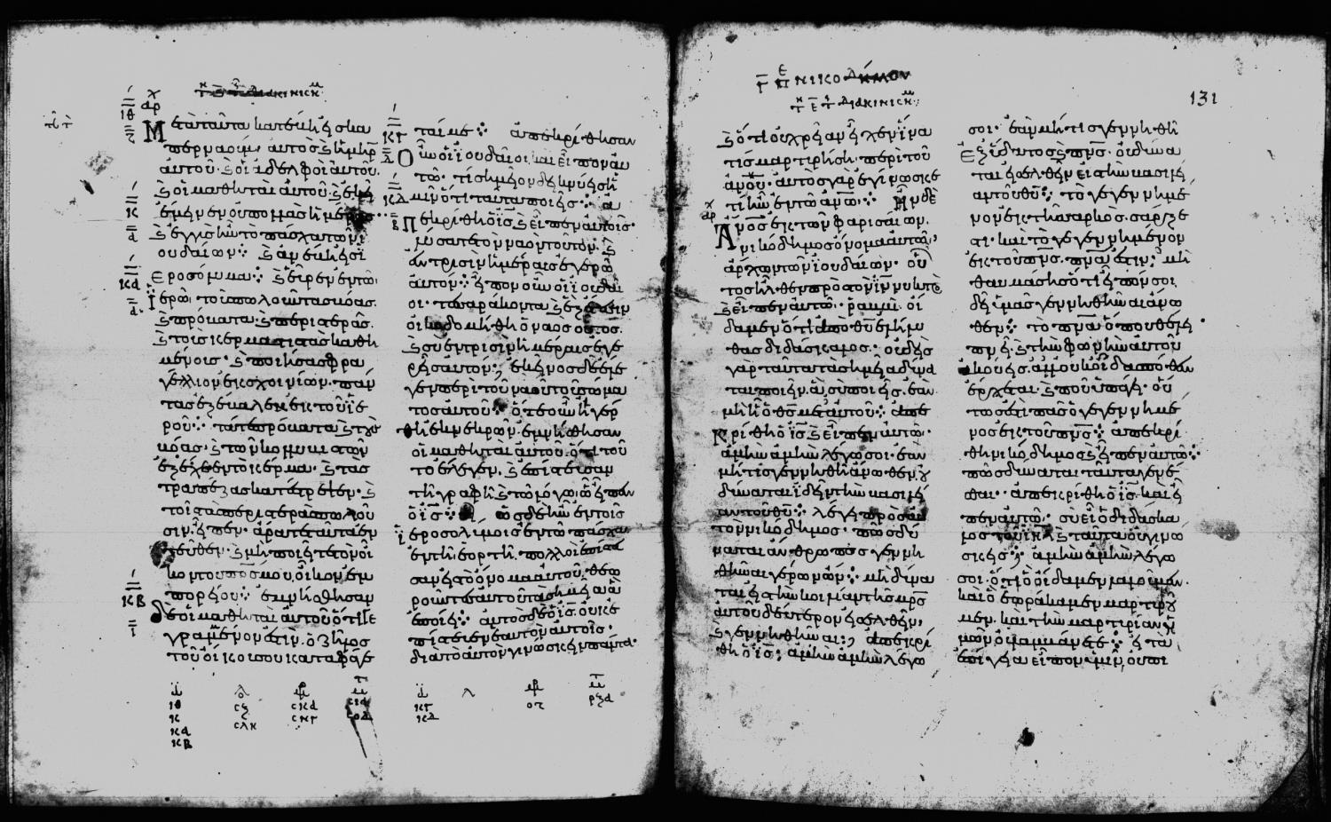 Eleventh century minuscule of the Gospels on parchment; 188 leaves, 2 columns, 25-28 lines per column. Digital images are from microfilm.