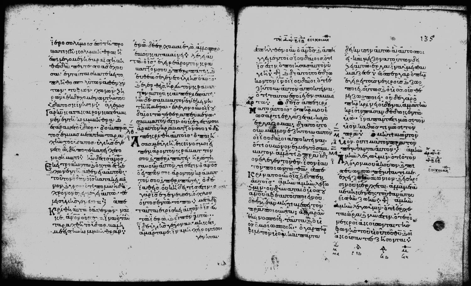 Eleventh century minuscule of the Gospels on parchment; 188 leaves, 2 columns, 25-28 lines per column. Digital images are from microfilm.