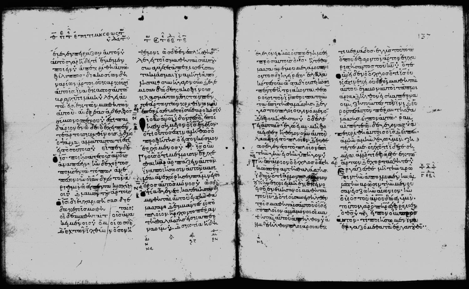 Eleventh century minuscule of the Gospels on parchment; 188 leaves, 2 columns, 25-28 lines per column. Digital images are from microfilm.