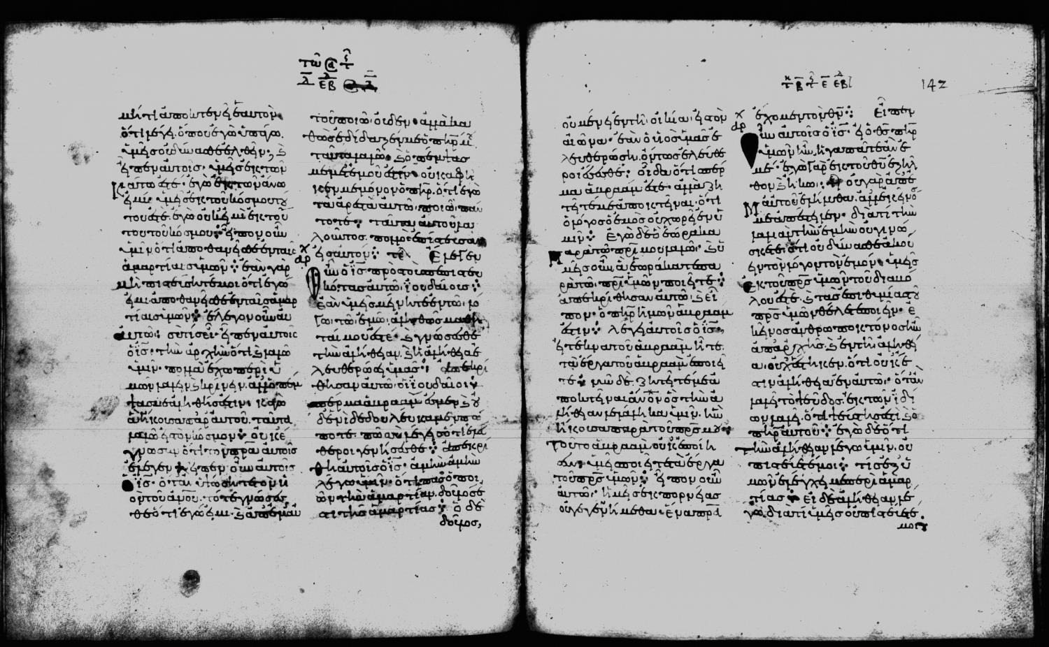 Eleventh century minuscule of the Gospels on parchment; 188 leaves, 2 columns, 25-28 lines per column. Digital images are from microfilm.