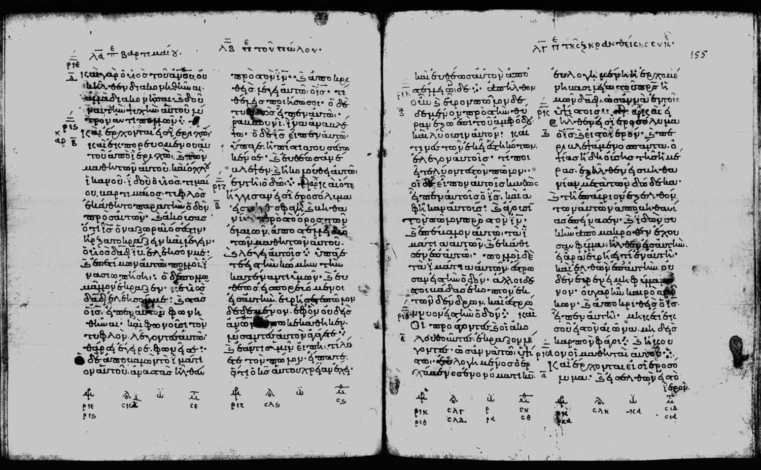 Eleventh century minuscule of the Gospels on parchment; 188 leaves, 2 columns, 25-28 lines per column. Digital images are from microfilm.