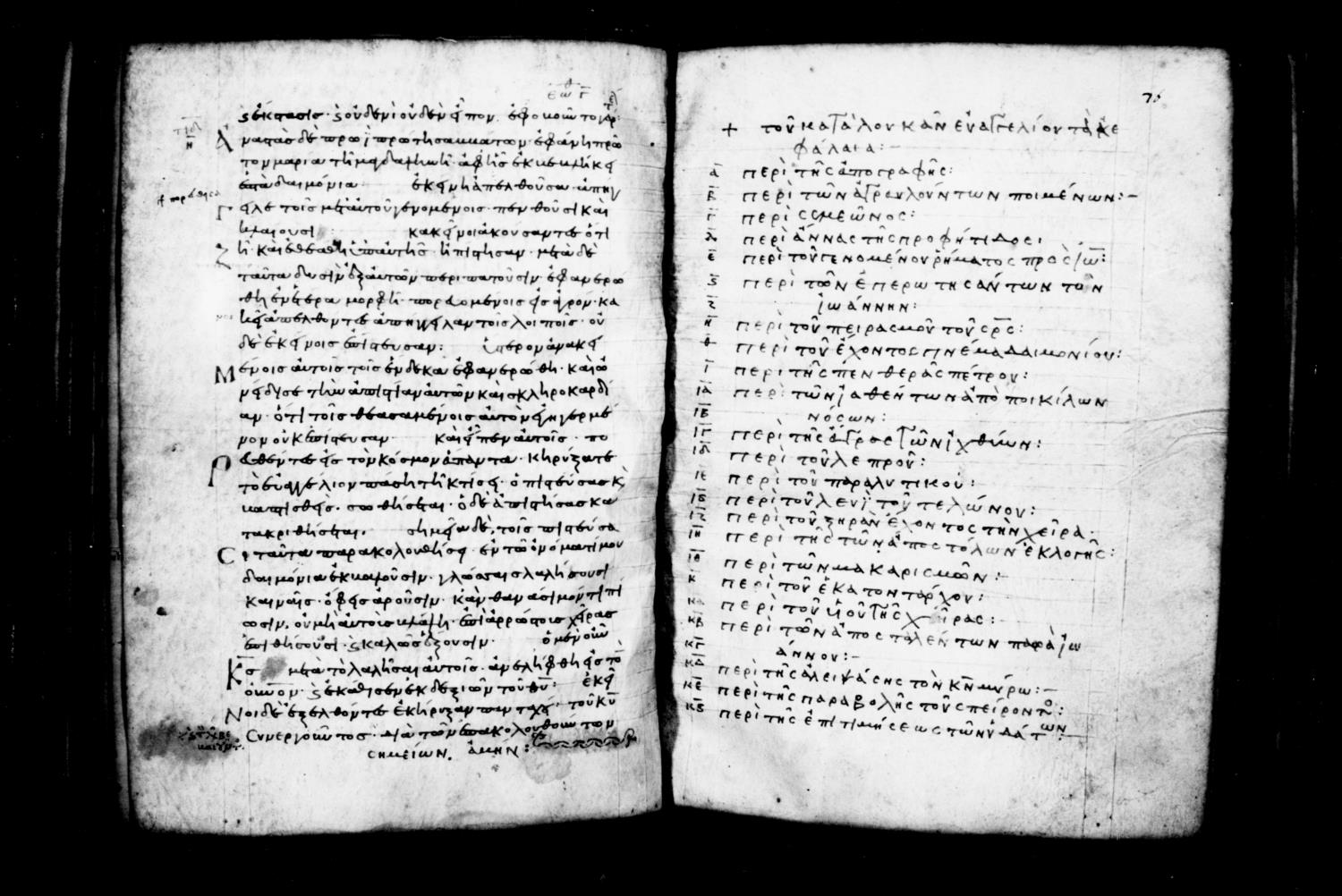 Tenth or eleventh century minuscule of the Gospels on parchment; 169 leaves, single column, 28-29 lines per column. Digital images are from microfilm. These images can be found at the Library of Congress.
