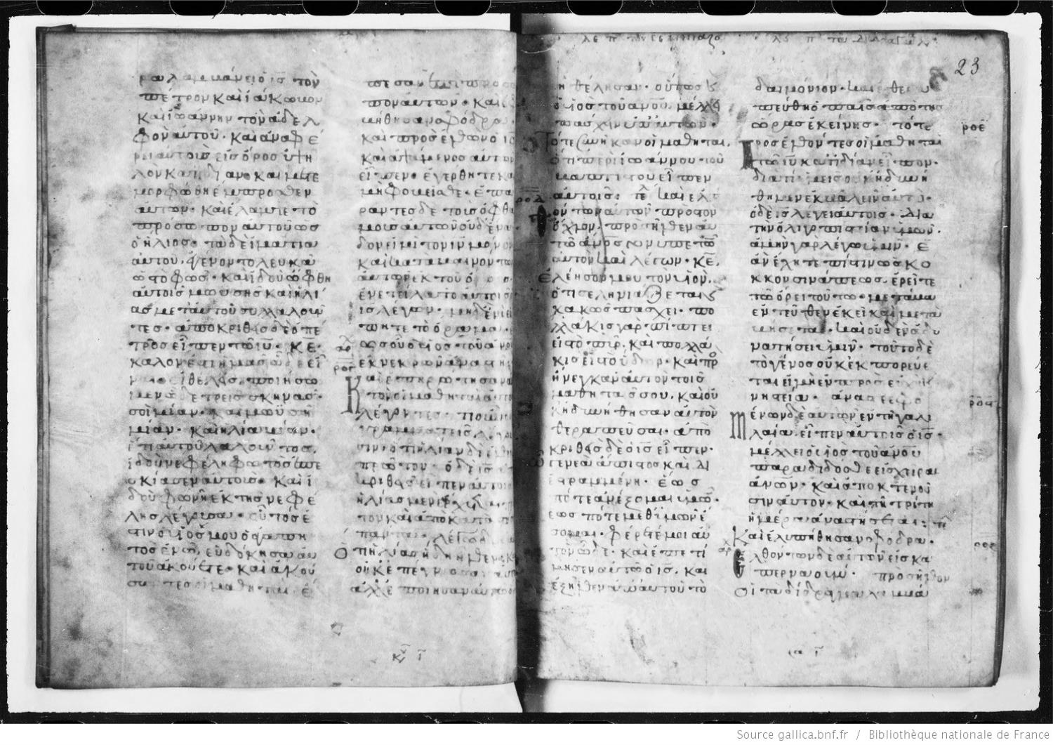 Thirteenth century minuscule of the Gospels on parchment; 170 leaves, 2 columns, 28-30 lines per column. Digital images are from microfilm.
