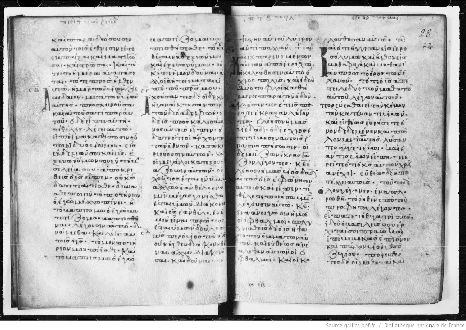 Thirteenth century minuscule of the Gospels on parchment; 170 leaves, 2 columns, 28-30 lines per column. Digital images are from microfilm.