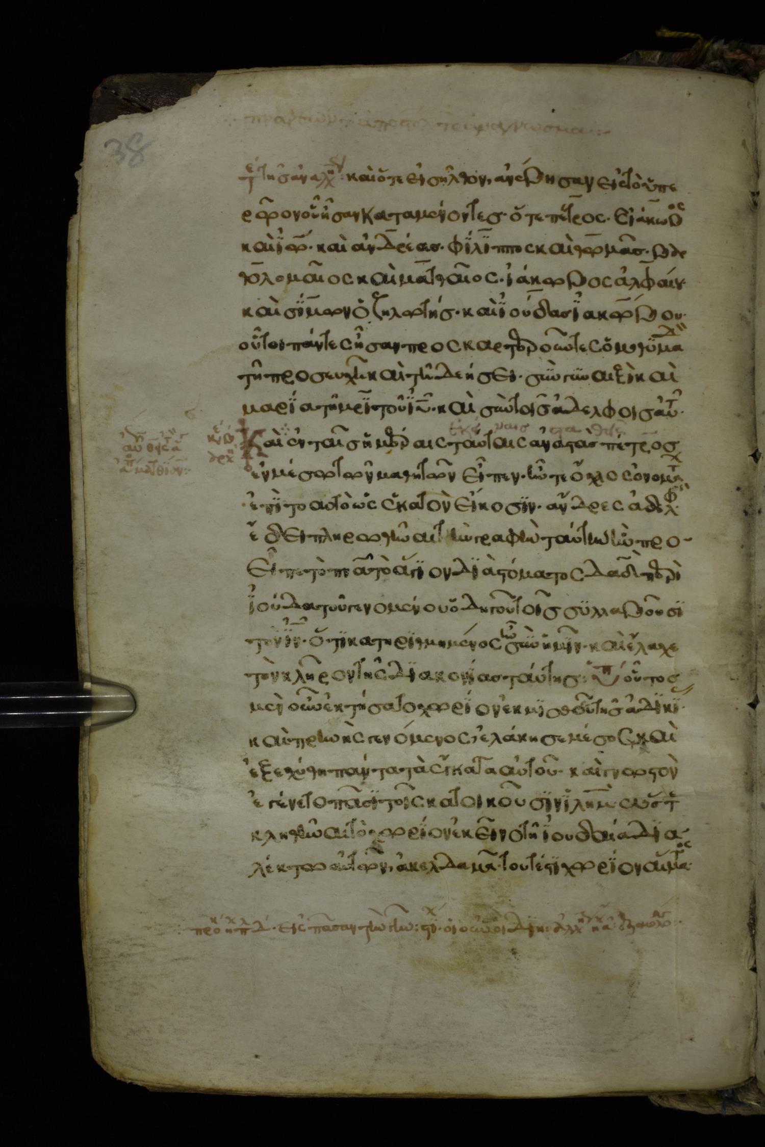Fifteenth century minuscule of the Apostolos and Paul on parchment; 272 leaves, 1 column, 20-22 lines per column. Images were taken at the National Library of Greece in Athens.