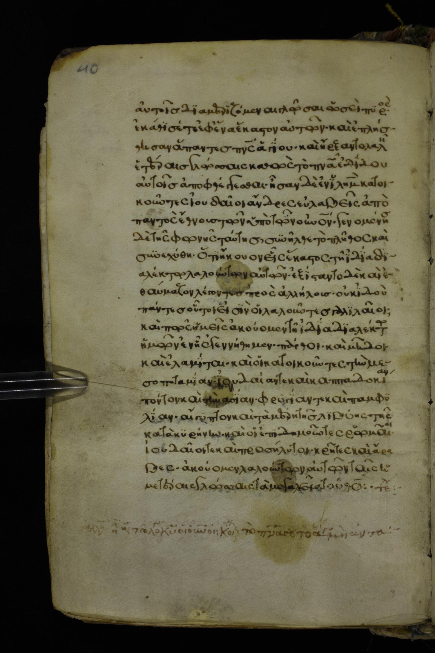 Fifteenth century minuscule of the Apostolos and Paul on parchment; 272 leaves, 1 column, 20-22 lines per column. Images were taken at the National Library of Greece in Athens.