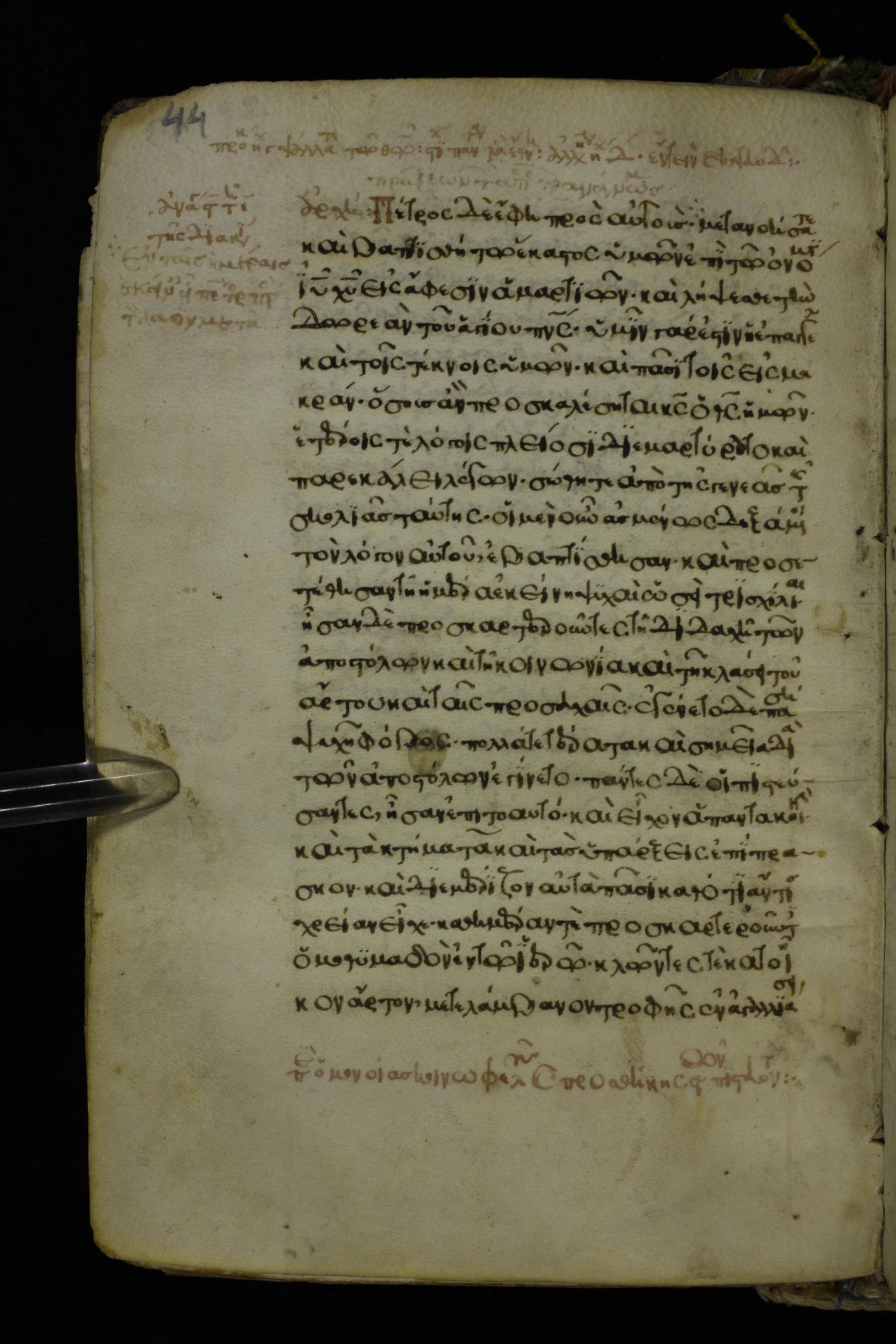 Fifteenth century minuscule of the Apostolos and Paul on parchment; 272 leaves, 1 column, 20-22 lines per column. Images were taken at the National Library of Greece in Athens.