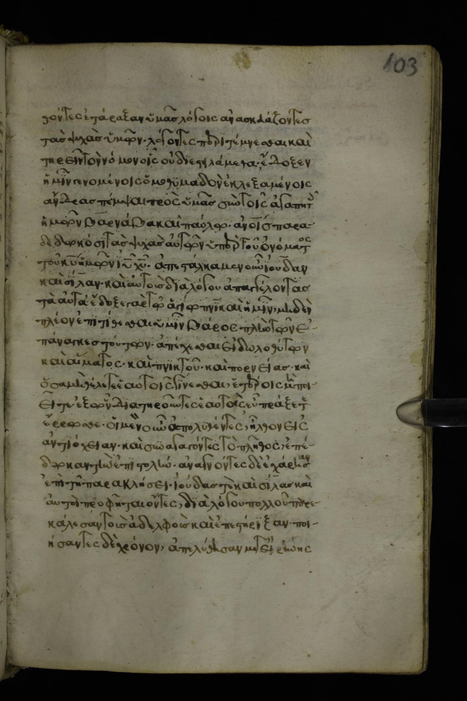 Fifteenth century minuscule of the Apostolos and Paul on parchment; 272 leaves, 1 column, 20-22 lines per column. Images were taken at the National Library of Greece in Athens.