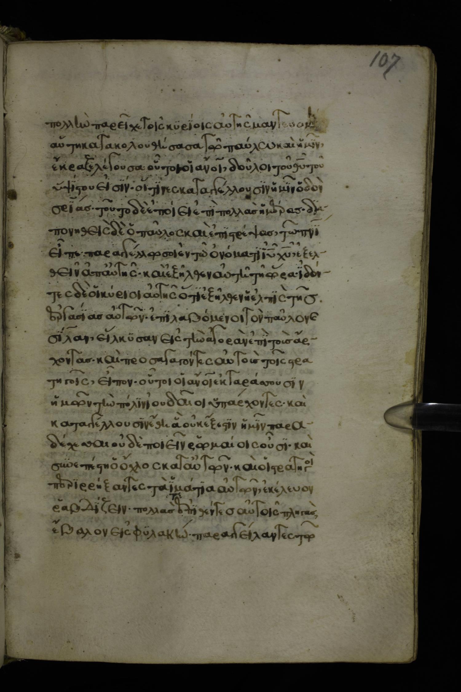 Fifteenth century minuscule of the Apostolos and Paul on parchment; 272 leaves, 1 column, 20-22 lines per column. Images were taken at the National Library of Greece in Athens.