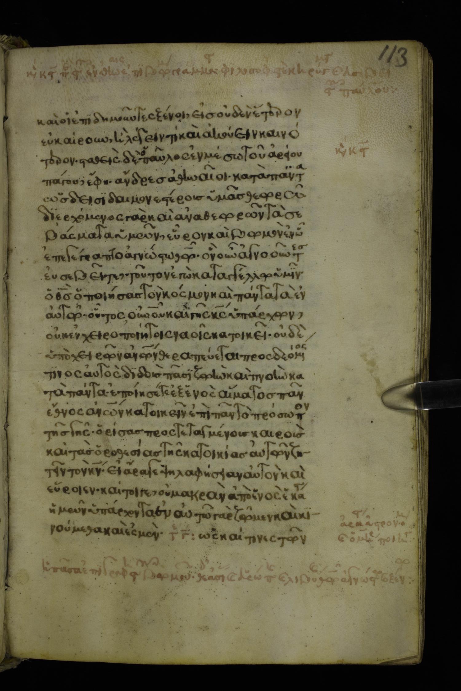 Fifteenth century minuscule of the Apostolos and Paul on parchment; 272 leaves, 1 column, 20-22 lines per column. Images were taken at the National Library of Greece in Athens.