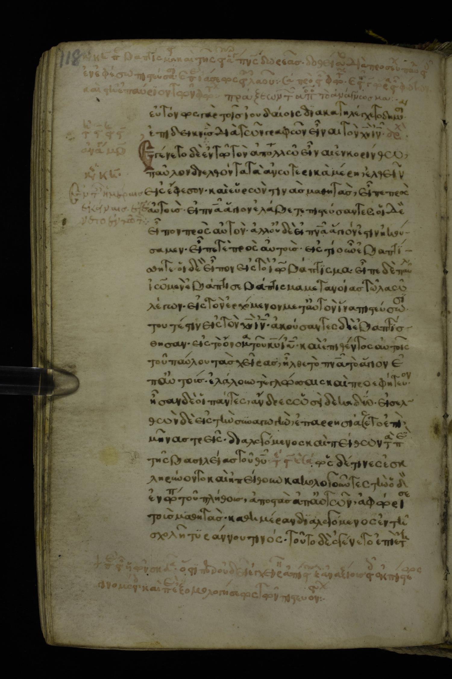 Fifteenth century minuscule of the Apostolos and Paul on parchment; 272 leaves, 1 column, 20-22 lines per column. Images were taken at the National Library of Greece in Athens.