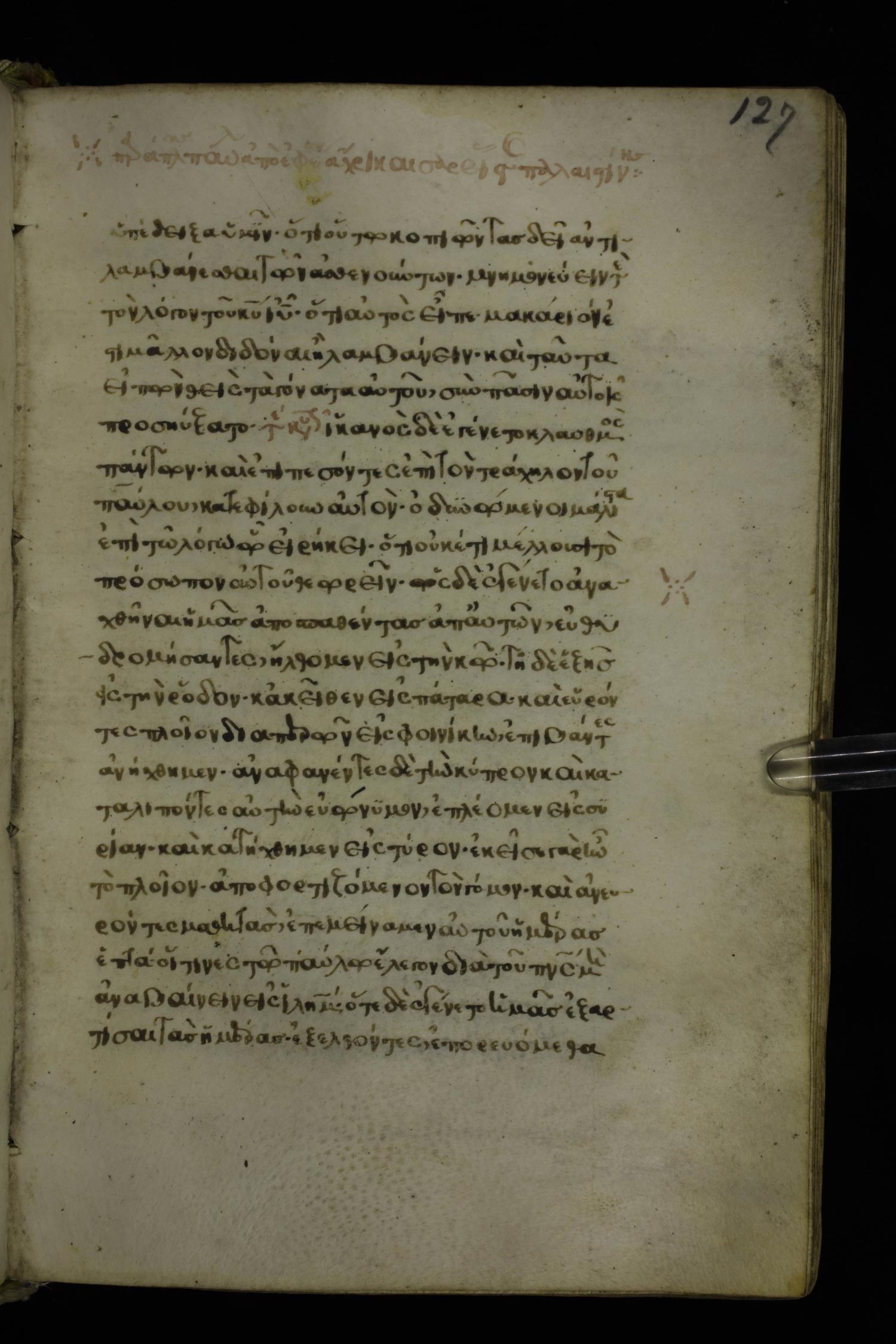 Fifteenth century minuscule of the Apostolos and Paul on parchment; 272 leaves, 1 column, 20-22 lines per column. Images were taken at the National Library of Greece in Athens.
