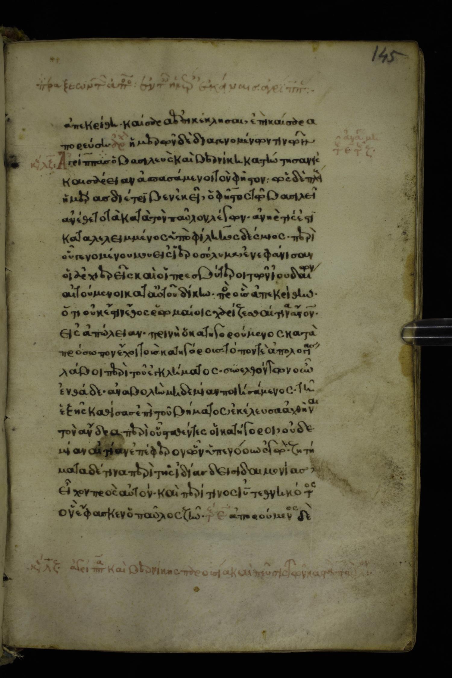 Fifteenth century minuscule of the Apostolos and Paul on parchment; 272 leaves, 1 column, 20-22 lines per column. Images were taken at the National Library of Greece in Athens.