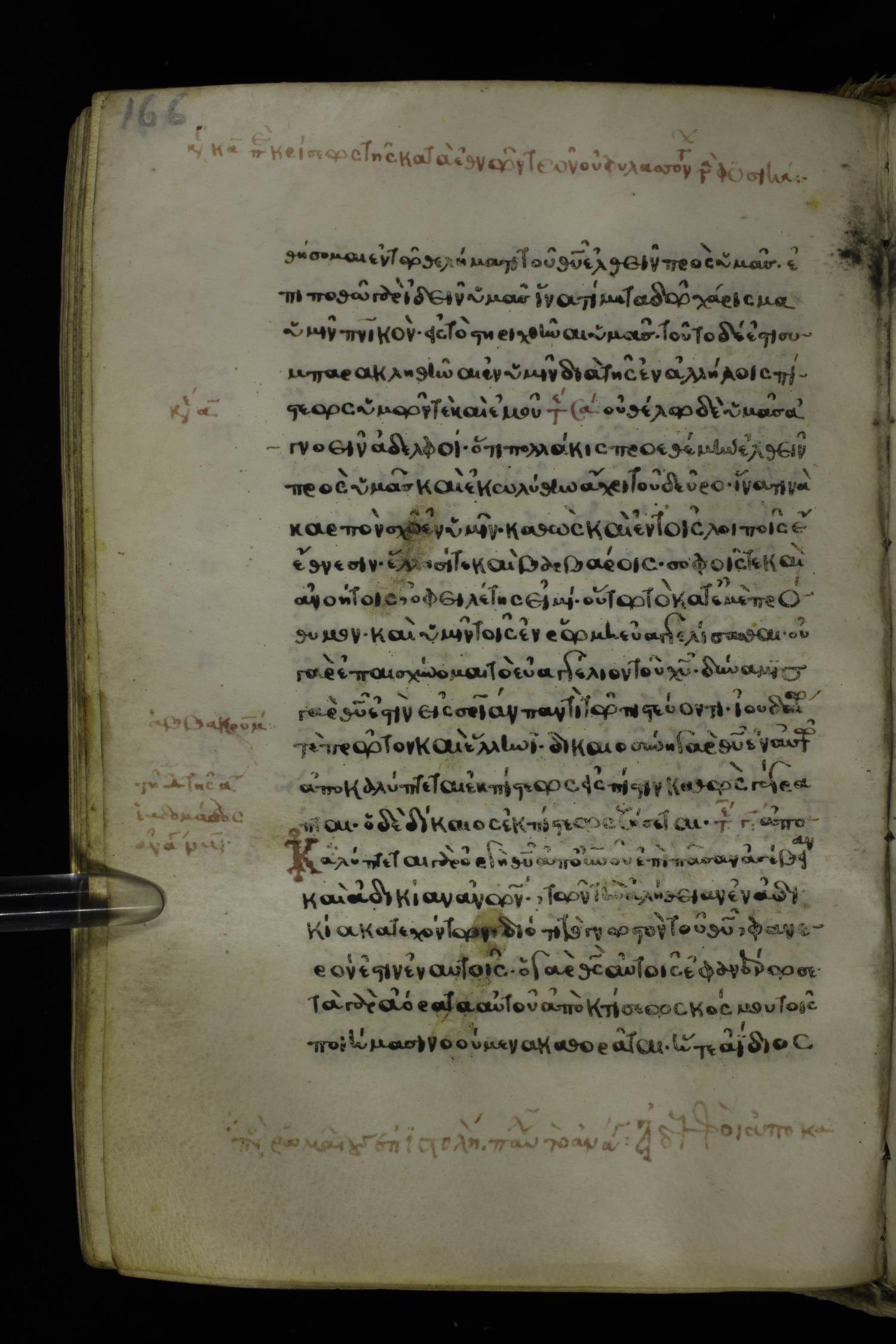 Fifteenth century minuscule of the Apostolos and Paul on parchment; 272 leaves, 1 column, 20-22 lines per column. Images were taken at the National Library of Greece in Athens.