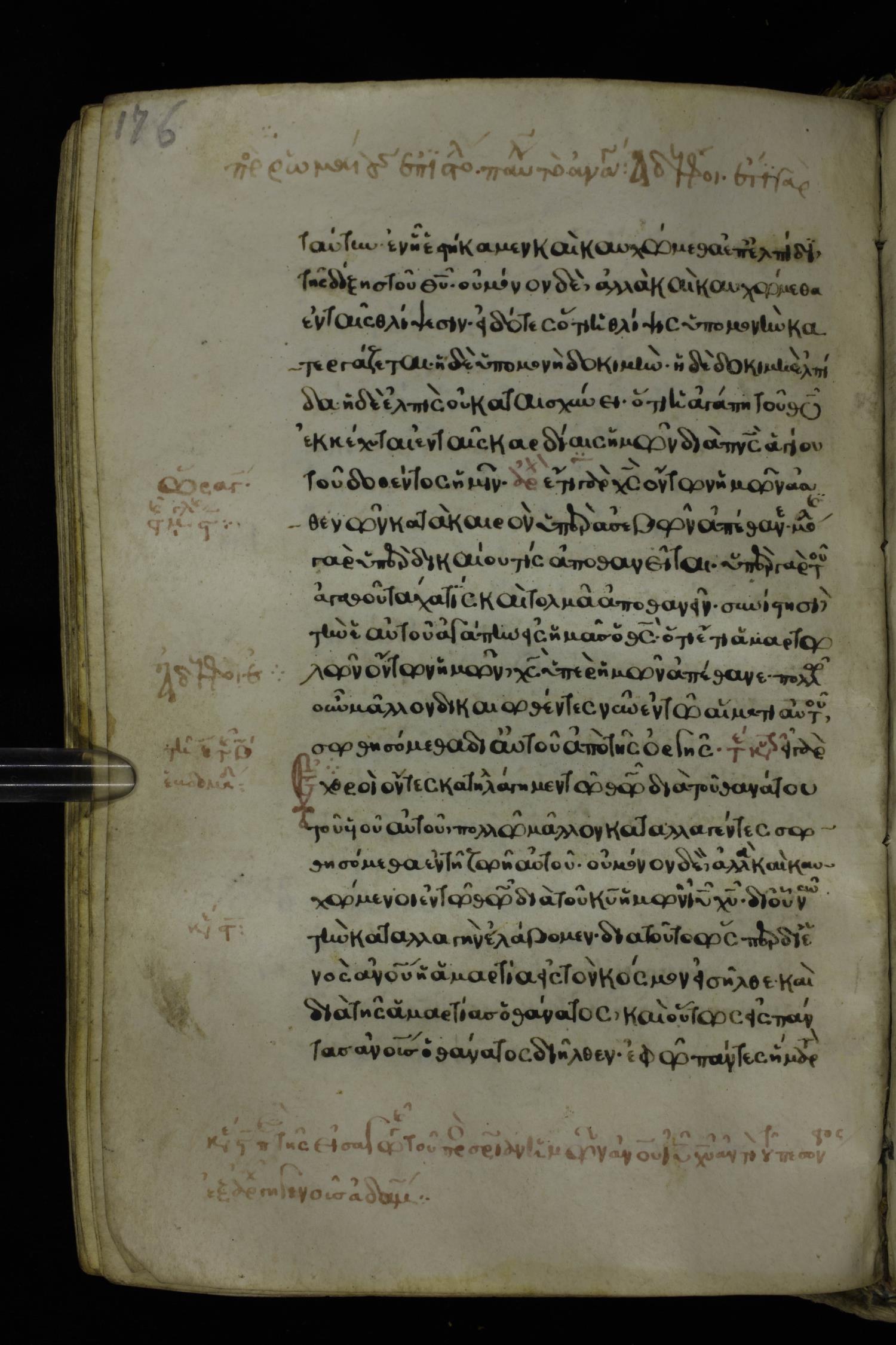Fifteenth century minuscule of the Apostolos and Paul on parchment; 272 leaves, 1 column, 20-22 lines per column. Images were taken at the National Library of Greece in Athens.