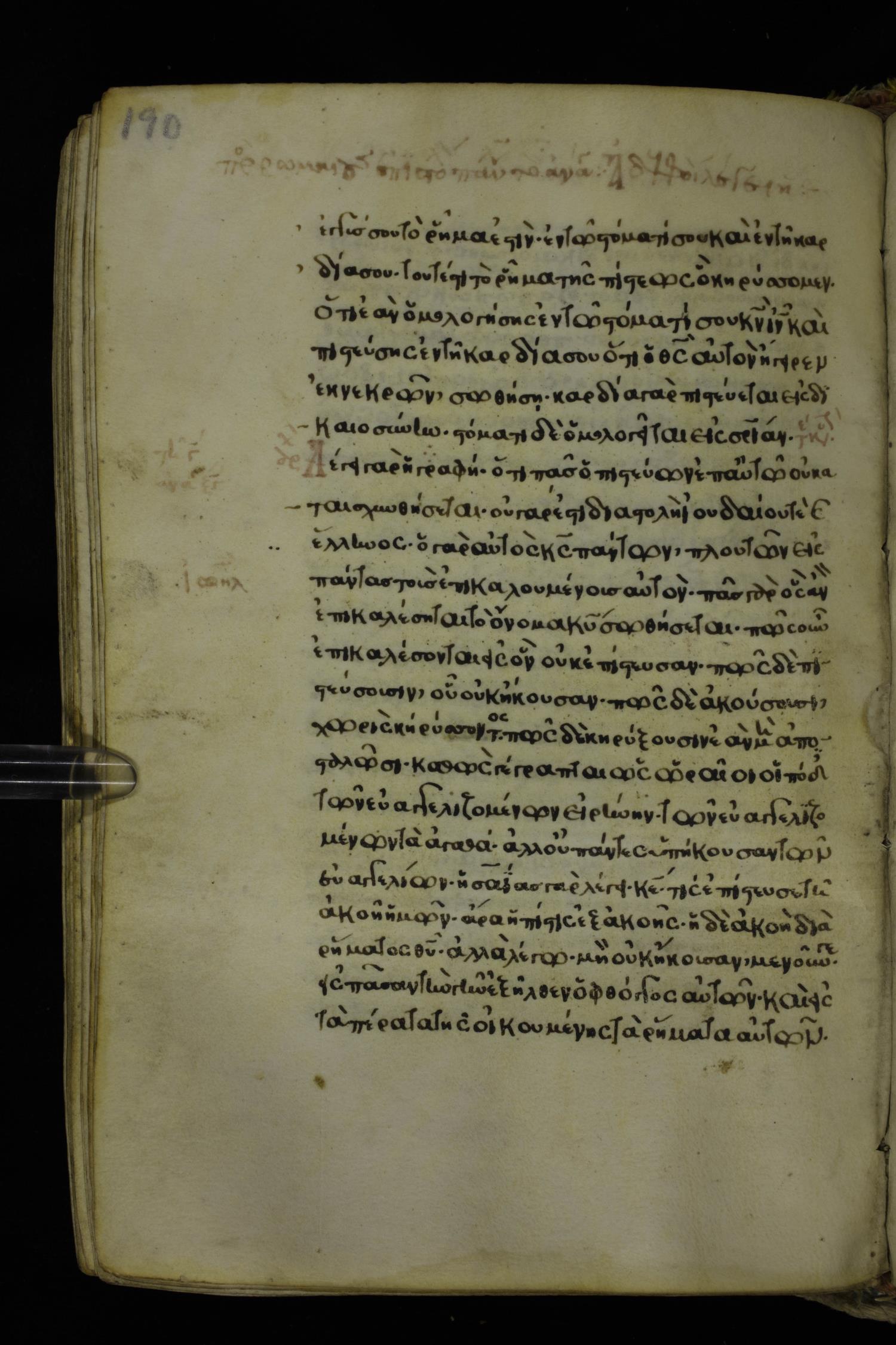 Fifteenth century minuscule of the Apostolos and Paul on parchment; 272 leaves, 1 column, 20-22 lines per column. Images were taken at the National Library of Greece in Athens.