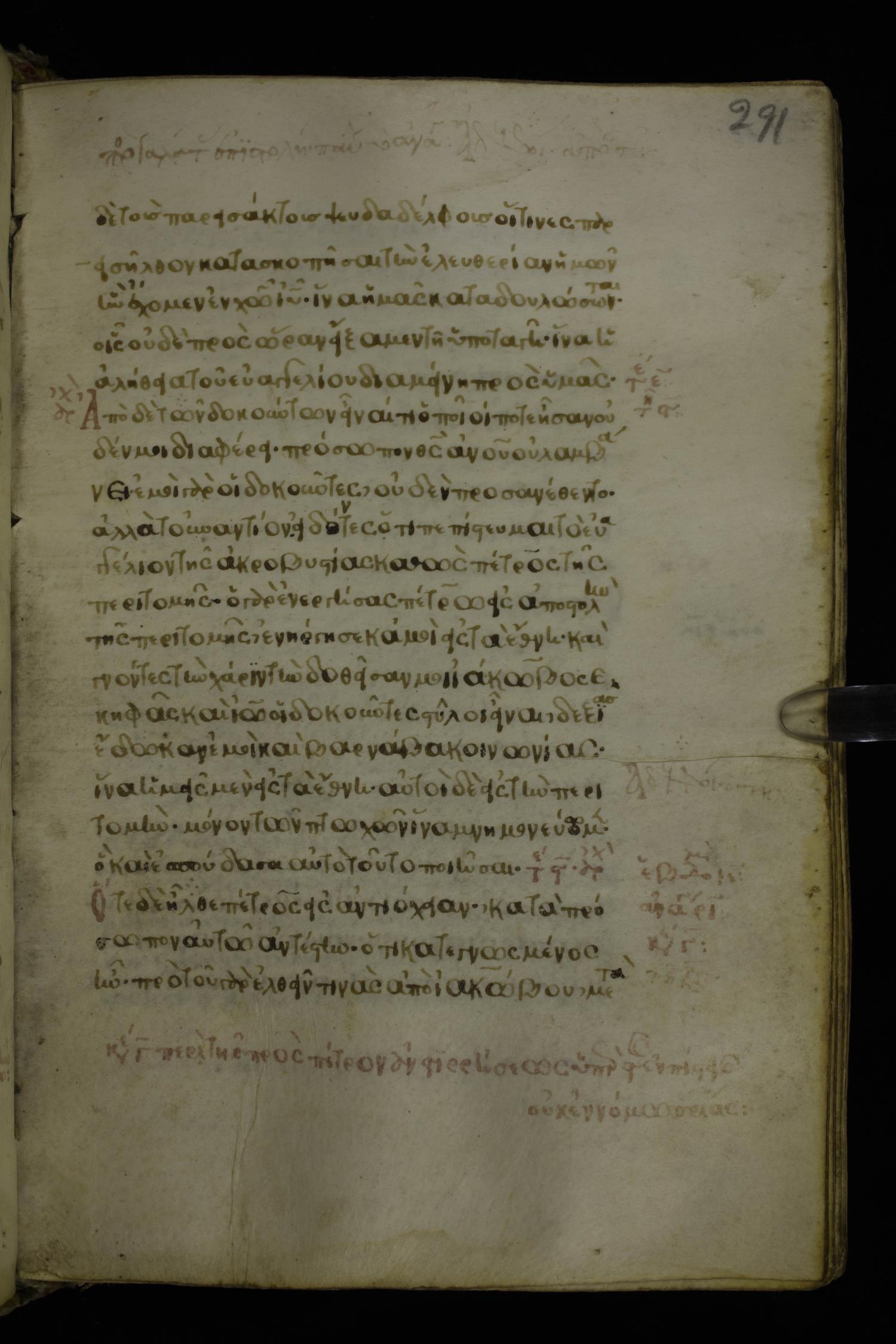 Fifteenth century minuscule of the Apostolos and Paul on parchment; 272 leaves, 1 column, 20-22 lines per column. Images were taken at the National Library of Greece in Athens.