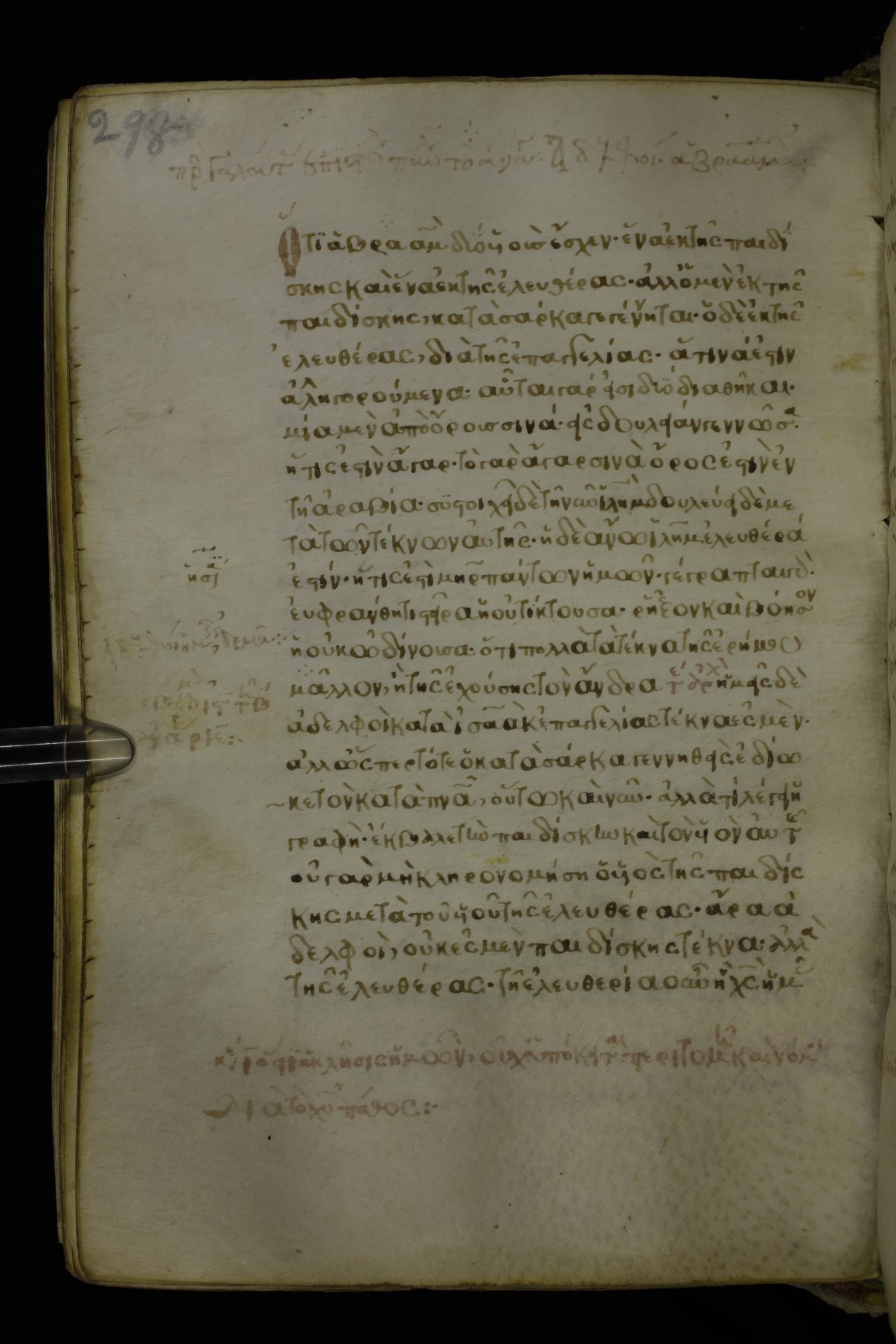 Fifteenth century minuscule of the Apostolos and Paul on parchment; 272 leaves, 1 column, 20-22 lines per column. Images were taken at the National Library of Greece in Athens.