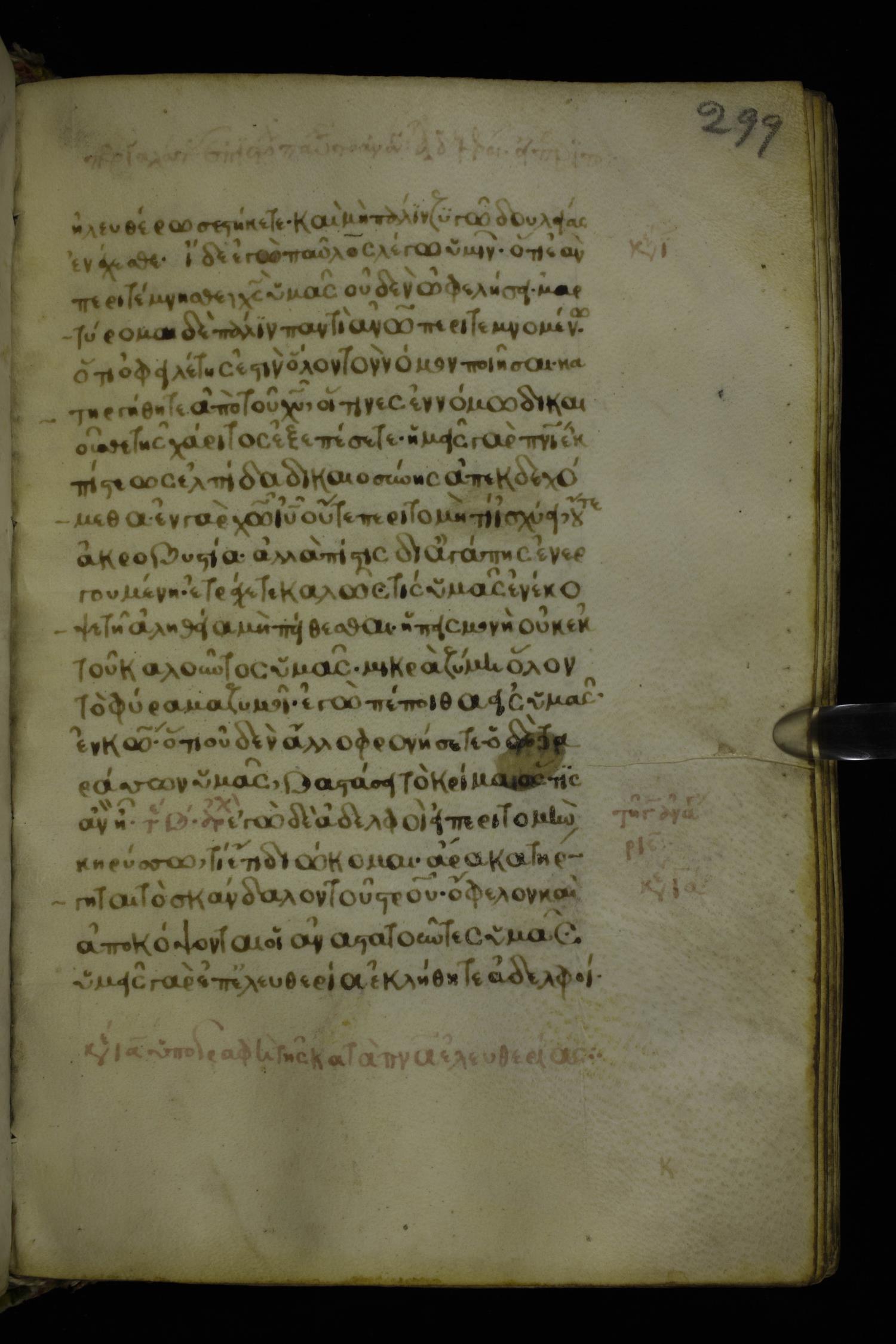 Fifteenth century minuscule of the Apostolos and Paul on parchment; 272 leaves, 1 column, 20-22 lines per column. Images were taken at the National Library of Greece in Athens.