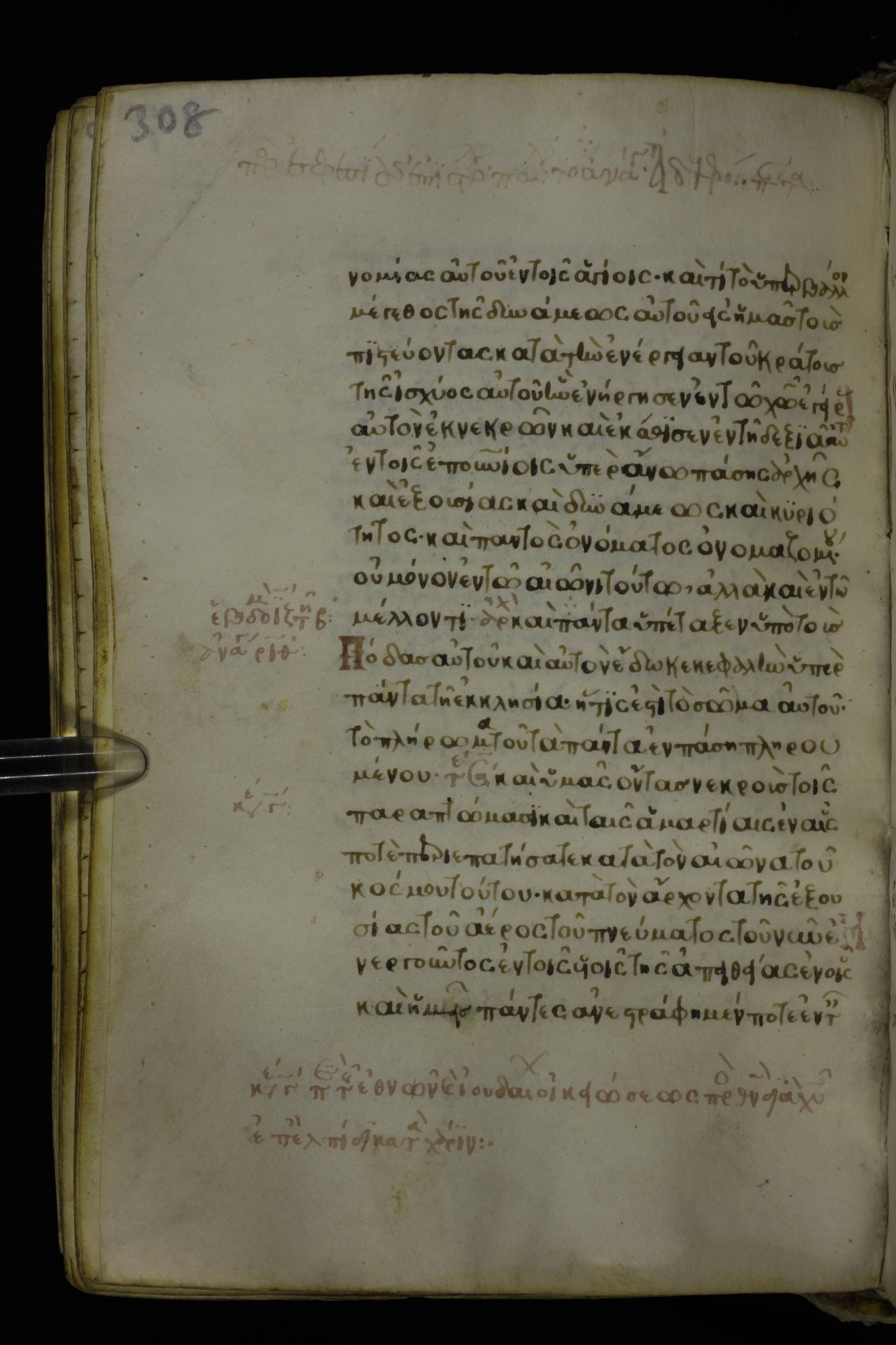 Fifteenth century minuscule of the Apostolos and Paul on parchment; 272 leaves, 1 column, 20-22 lines per column. Images were taken at the National Library of Greece in Athens.