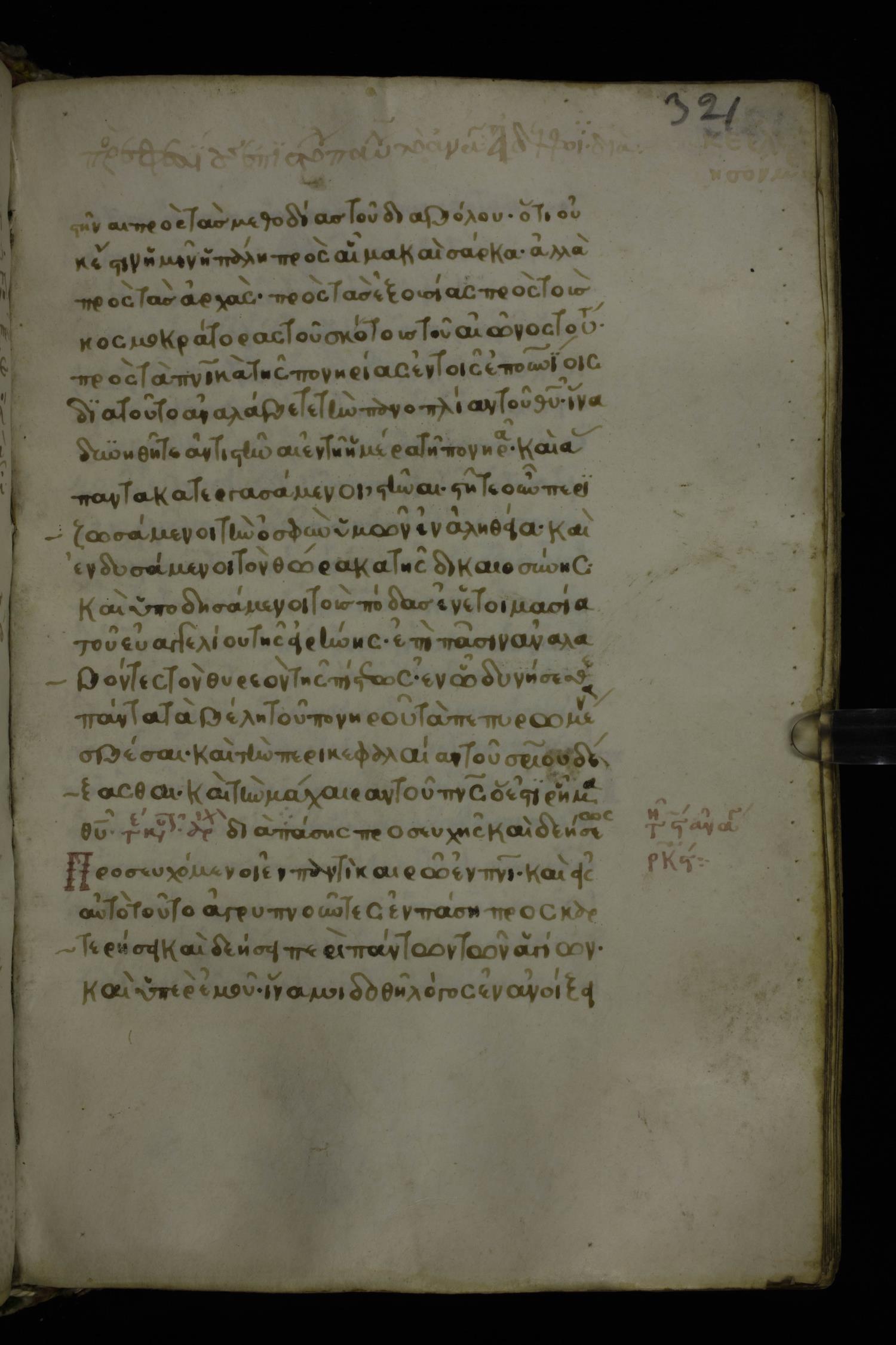 Fifteenth century minuscule of the Apostolos and Paul on parchment; 272 leaves, 1 column, 20-22 lines per column. Images were taken at the National Library of Greece in Athens.