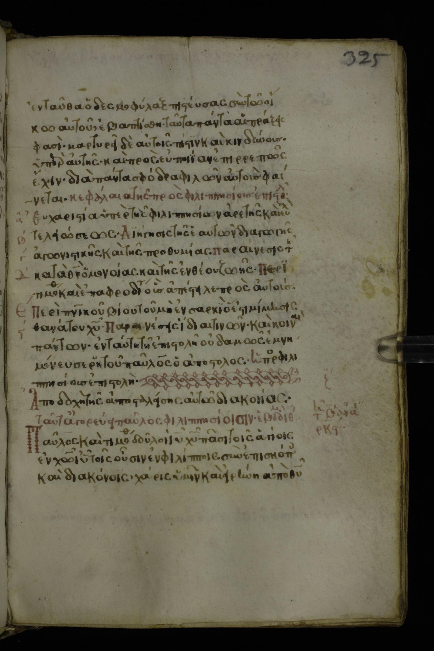 Fifteenth century minuscule of the Apostolos and Paul on parchment; 272 leaves, 1 column, 20-22 lines per column. Images were taken at the National Library of Greece in Athens.