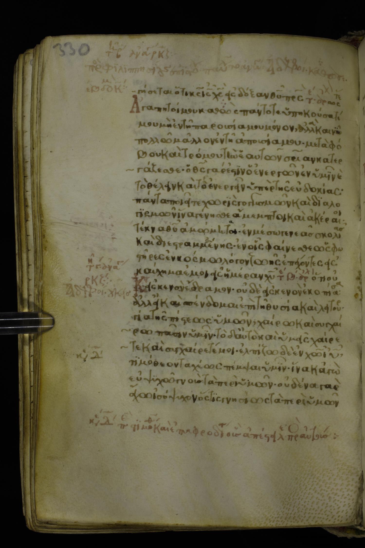 Fifteenth century minuscule of the Apostolos and Paul on parchment; 272 leaves, 1 column, 20-22 lines per column. Images were taken at the National Library of Greece in Athens.