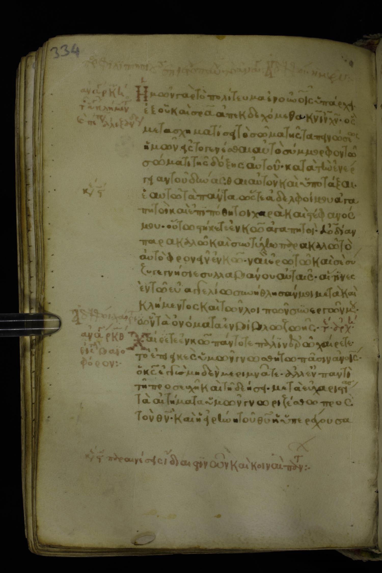 Fifteenth century minuscule of the Apostolos and Paul on parchment; 272 leaves, 1 column, 20-22 lines per column. Images were taken at the National Library of Greece in Athens.