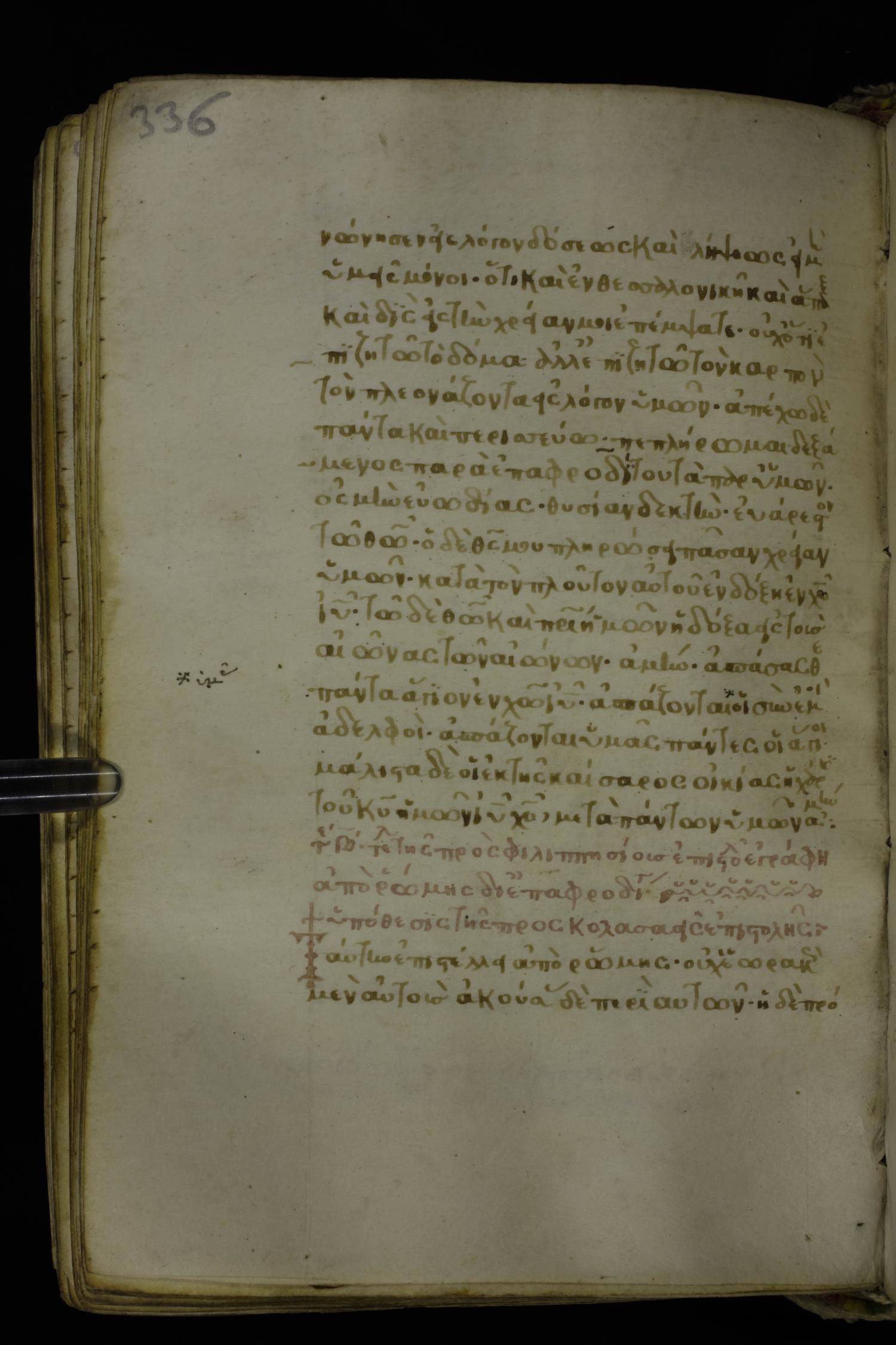 Fifteenth century minuscule of the Apostolos and Paul on parchment; 272 leaves, 1 column, 20-22 lines per column. Images were taken at the National Library of Greece in Athens.