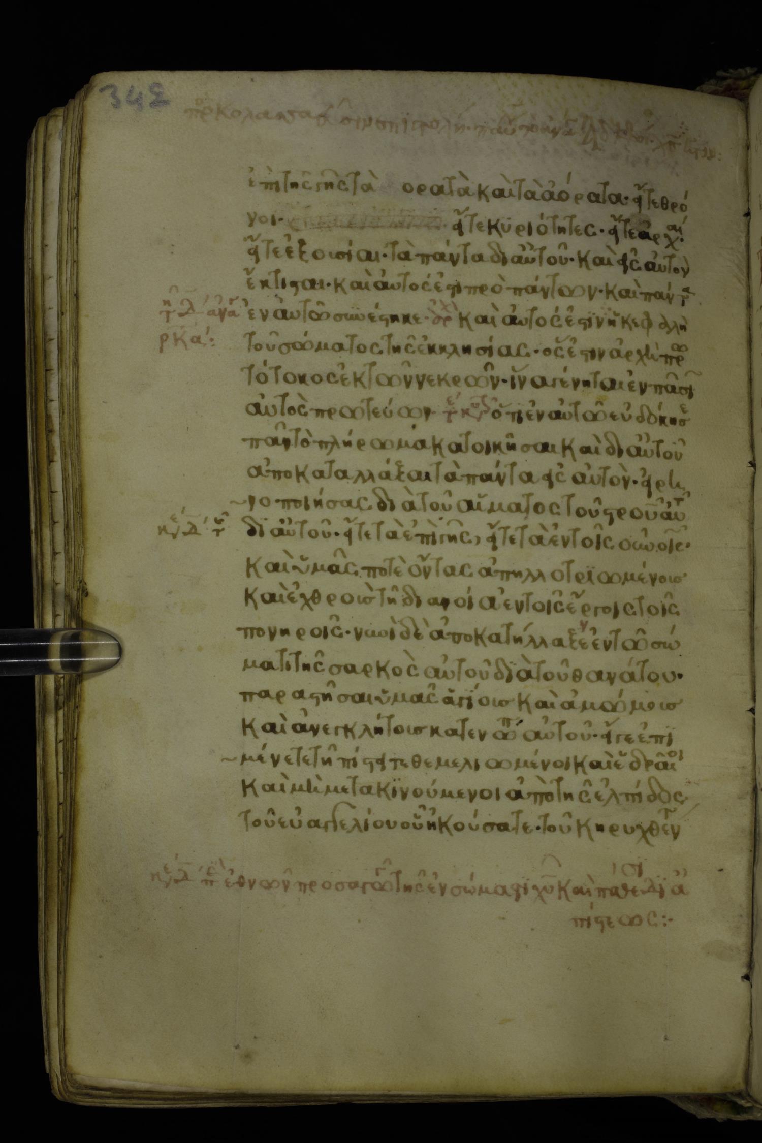 Fifteenth century minuscule of the Apostolos and Paul on parchment; 272 leaves, 1 column, 20-22 lines per column. Images were taken at the National Library of Greece in Athens.