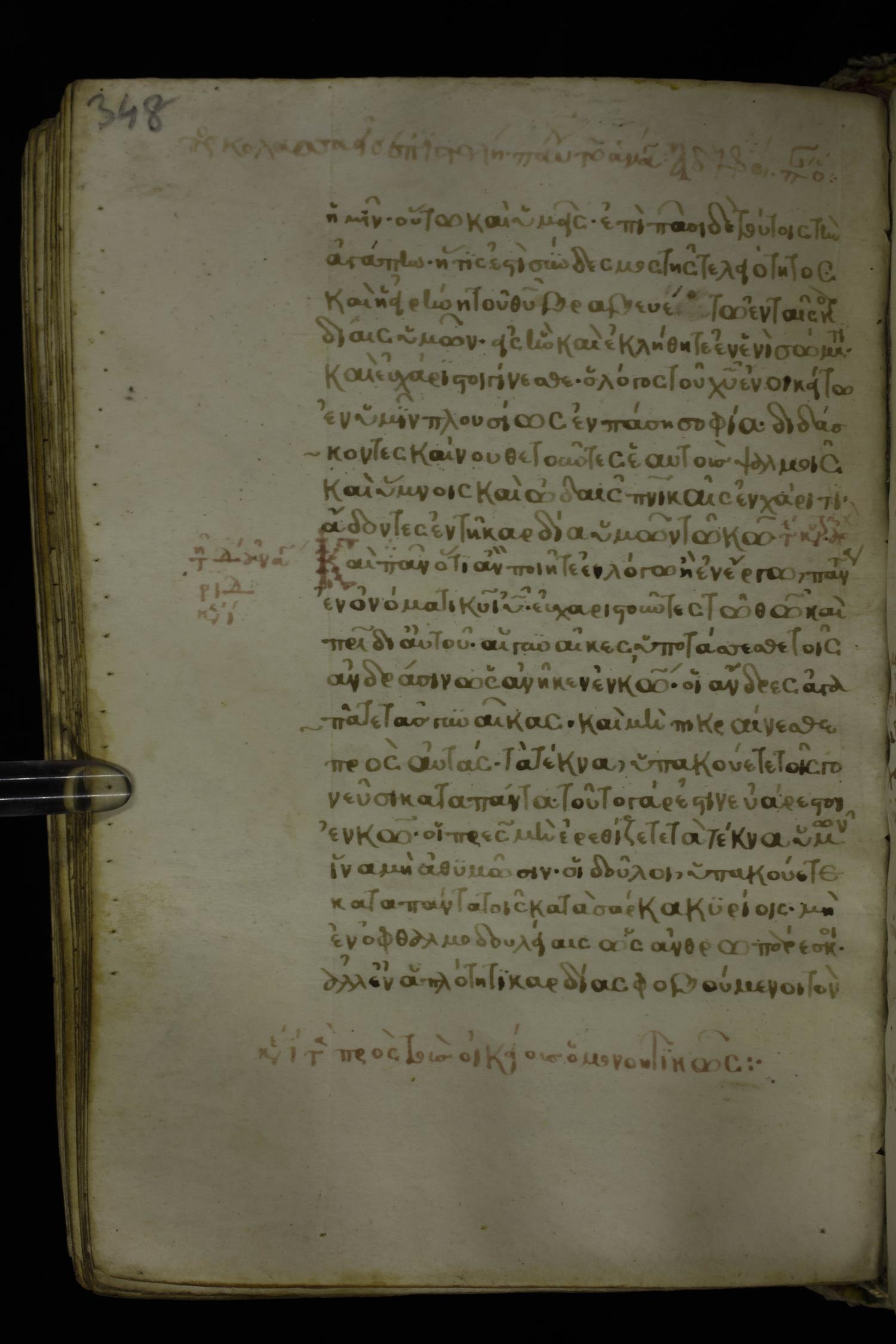 Fifteenth century minuscule of the Apostolos and Paul on parchment; 272 leaves, 1 column, 20-22 lines per column. Images were taken at the National Library of Greece in Athens.