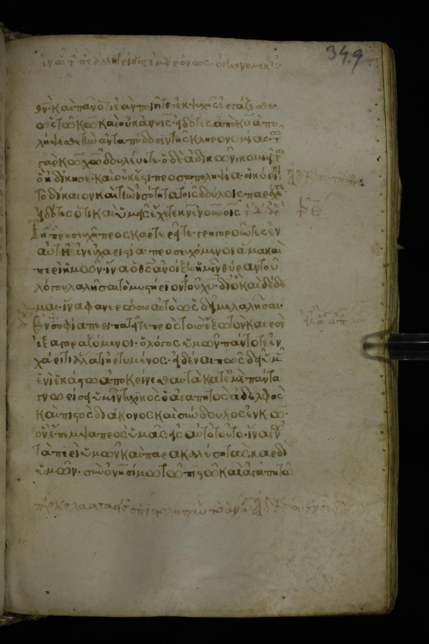 Fifteenth century minuscule of the Apostolos and Paul on parchment; 272 leaves, 1 column, 20-22 lines per column. Images were taken at the National Library of Greece in Athens.