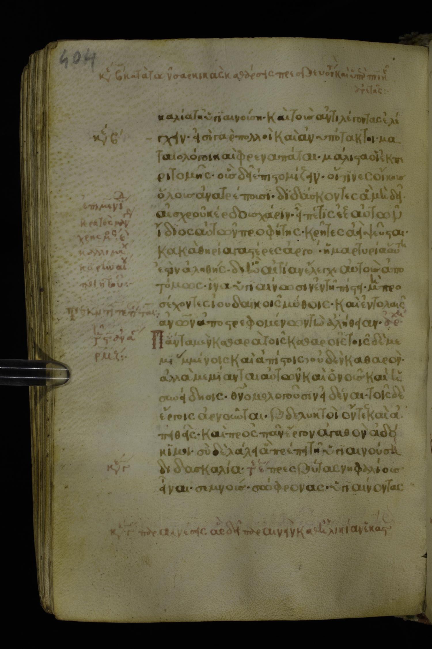Fifteenth century minuscule of the Apostolos and Paul on parchment; 272 leaves, 1 column, 20-22 lines per column. Images were taken at the National Library of Greece in Athens.