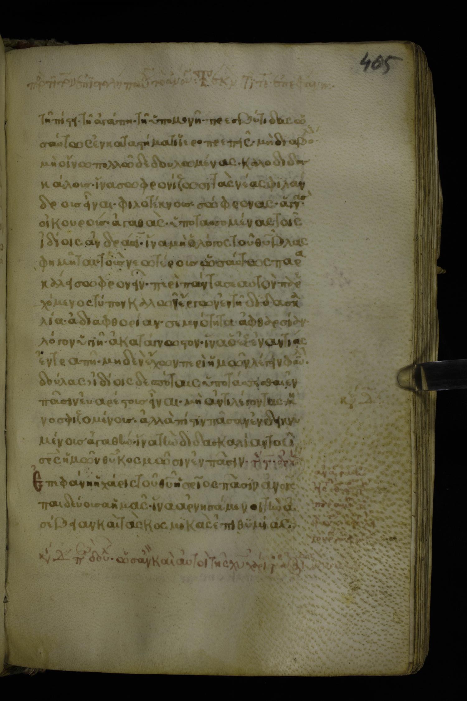 Fifteenth century minuscule of the Apostolos and Paul on parchment; 272 leaves, 1 column, 20-22 lines per column. Images were taken at the National Library of Greece in Athens.