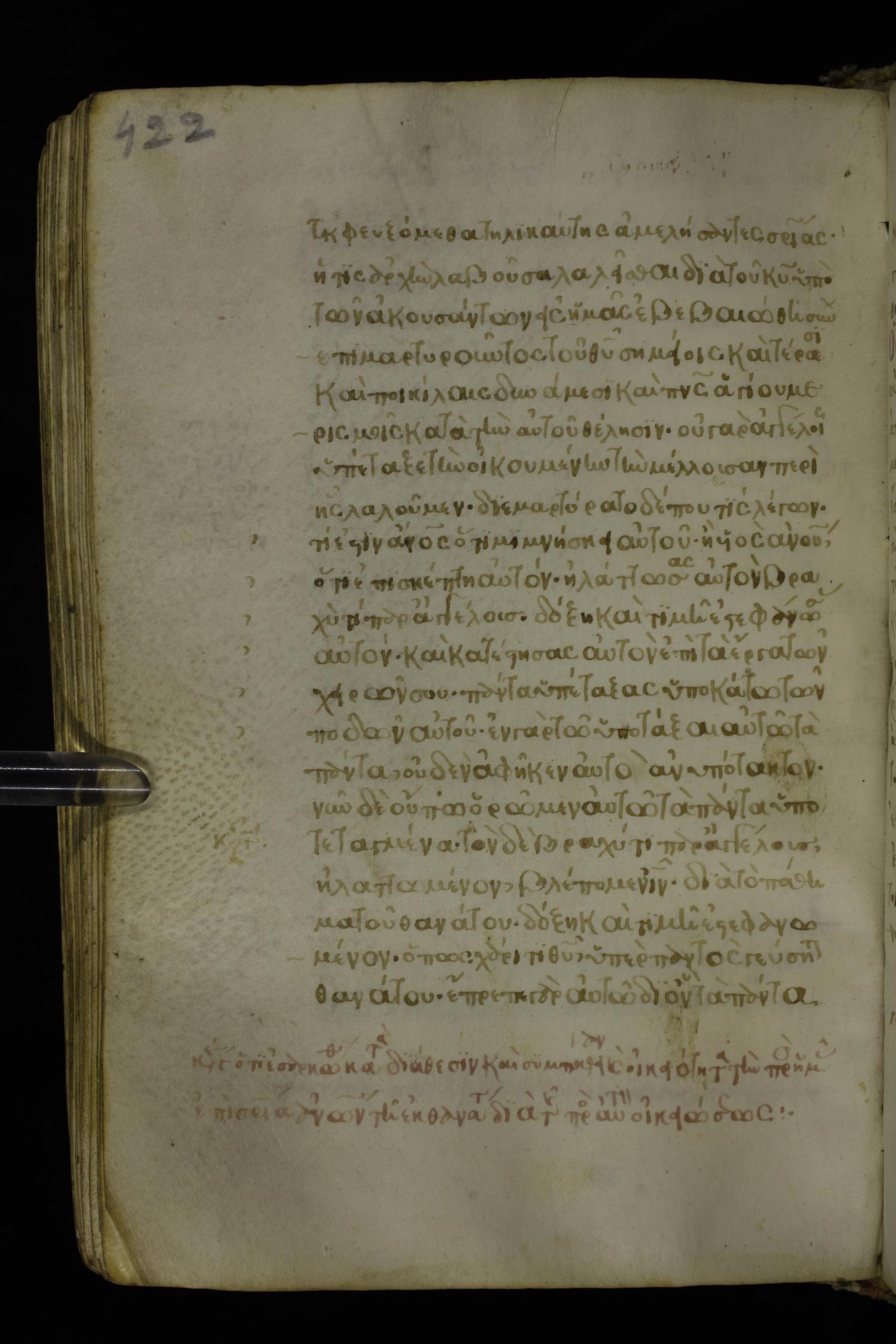 Fifteenth century minuscule of the Apostolos and Paul on parchment; 272 leaves, 1 column, 20-22 lines per column. Images were taken at the National Library of Greece in Athens.