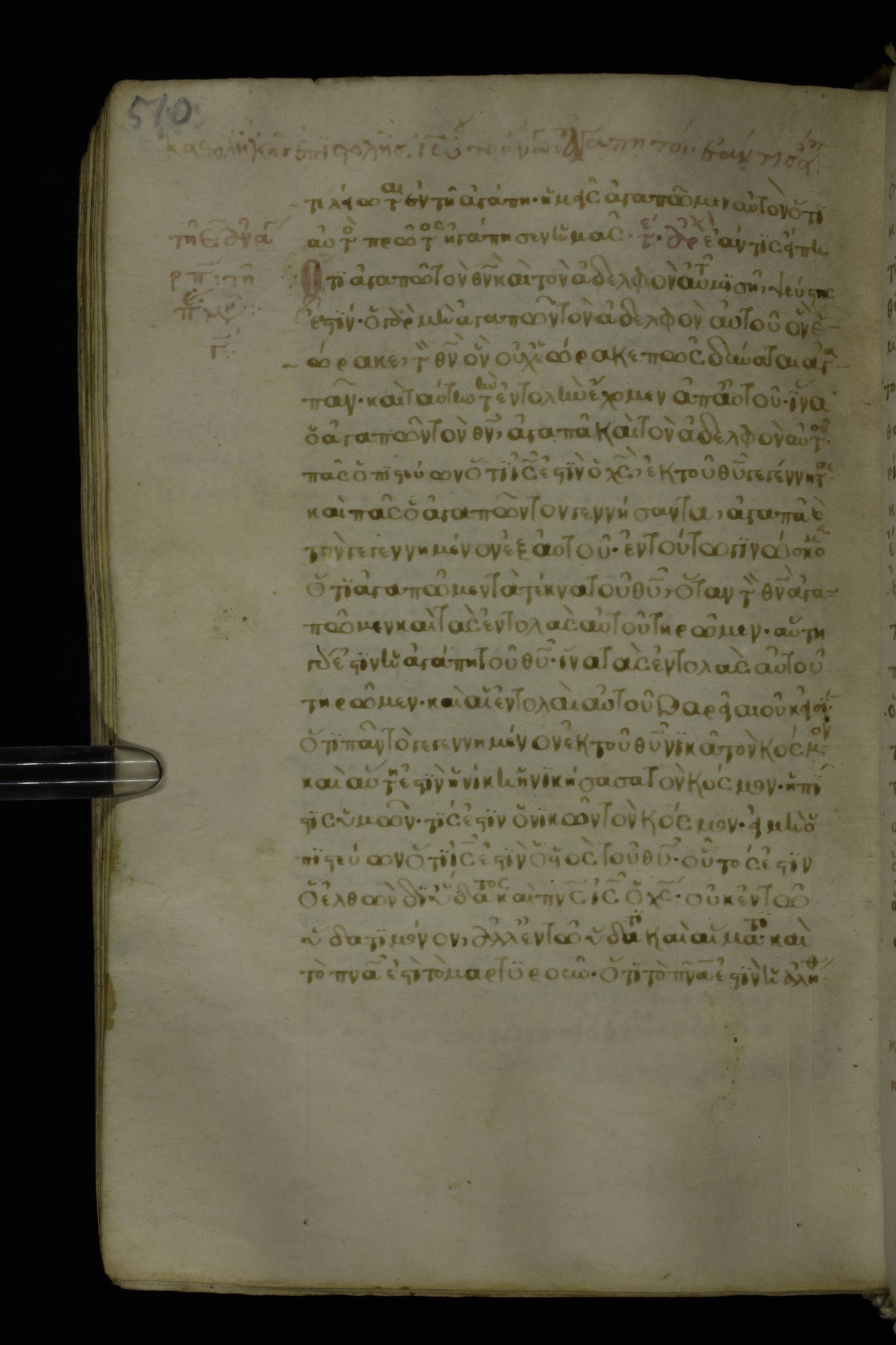 Fifteenth century minuscule of the Apostolos and Paul on parchment; 272 leaves, 1 column, 20-22 lines per column. Images were taken at the National Library of Greece in Athens.