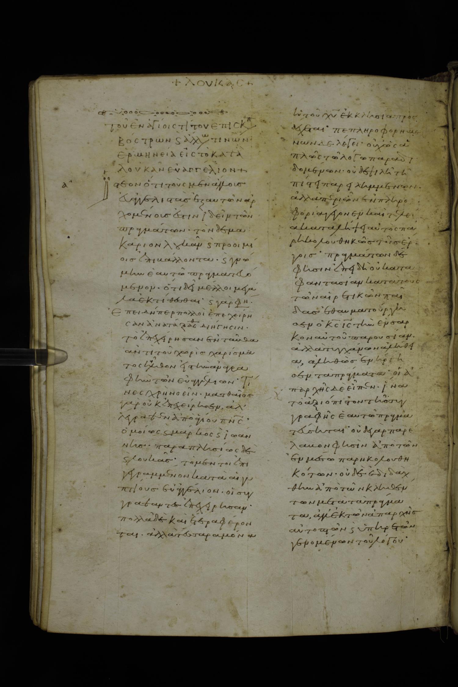 Tenth or eleventh century minuscule of the Gospels on parchment; 163 leaves, 2 columns, 27-43 lines per column. Images were taken at the National Library of Greece in Athens.