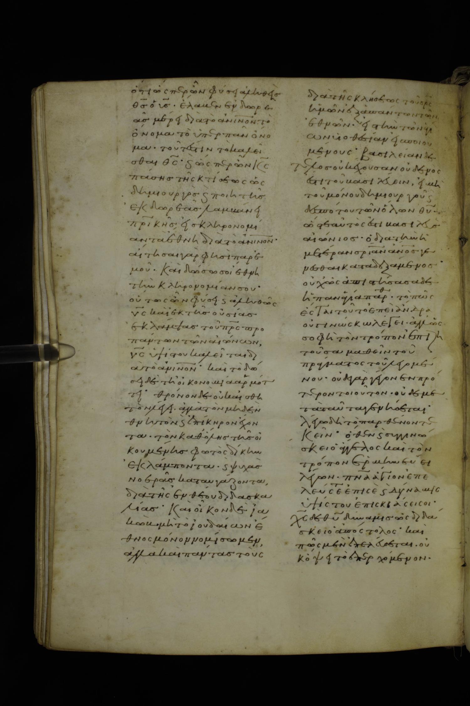 Tenth or eleventh century minuscule of the Gospels on parchment; 163 leaves, 2 columns, 27-43 lines per column. Images were taken at the National Library of Greece in Athens.