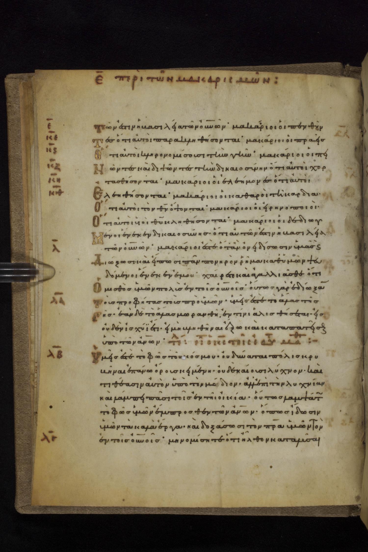 Eleventh century minuscule of the Gospels on parchment; 231 leaves, 1 column, 24 lines per column. Images were taken at the National Library of Greece in Athens.