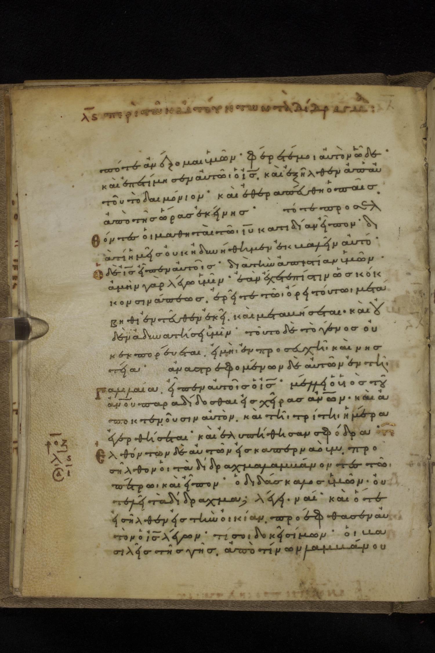 Eleventh century minuscule of the Gospels on parchment; 231 leaves, 1 column, 24 lines per column. Images were taken at the National Library of Greece in Athens.