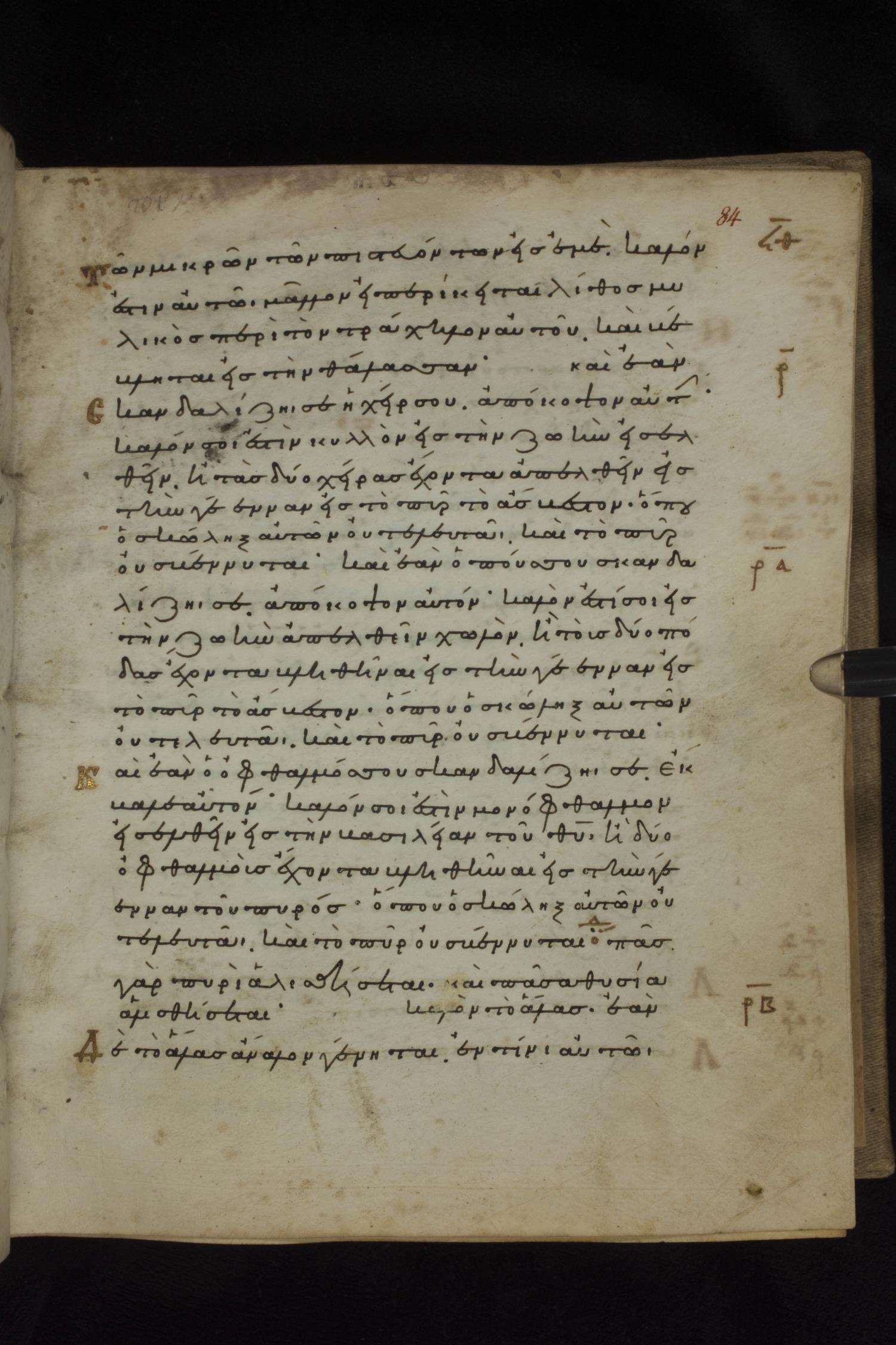 Eleventh century minuscule of the Gospels on parchment; 231 leaves, 1 column, 24 lines per column. Images were taken at the National Library of Greece in Athens.